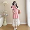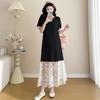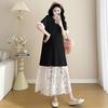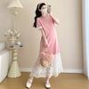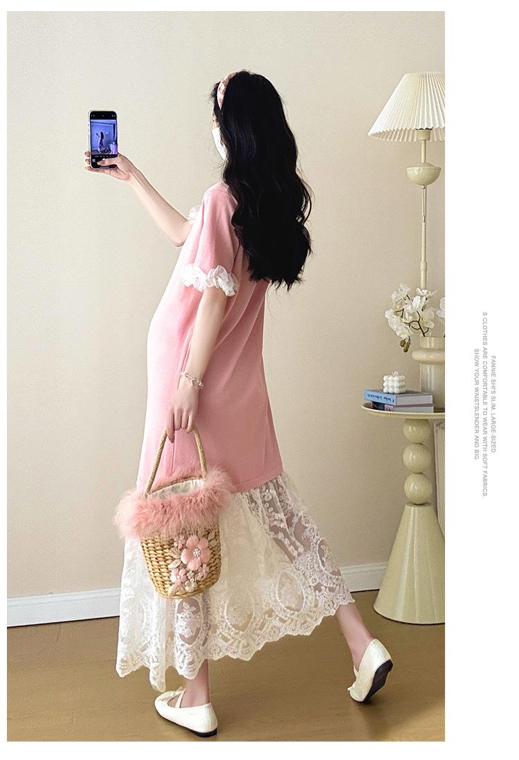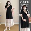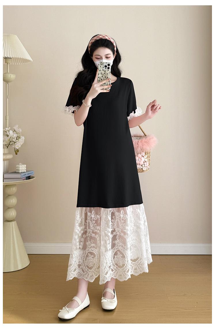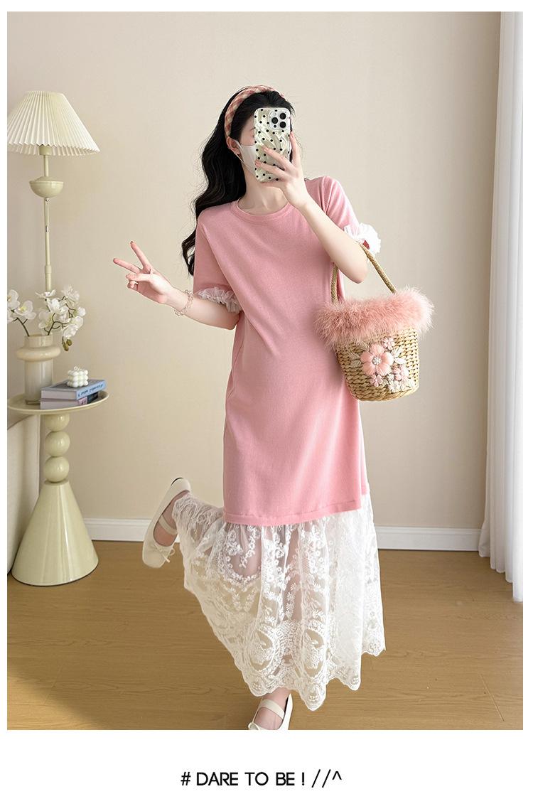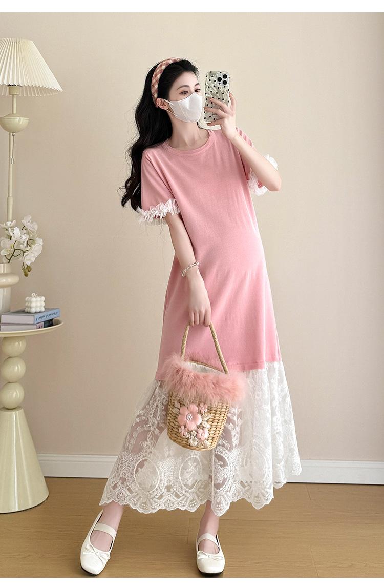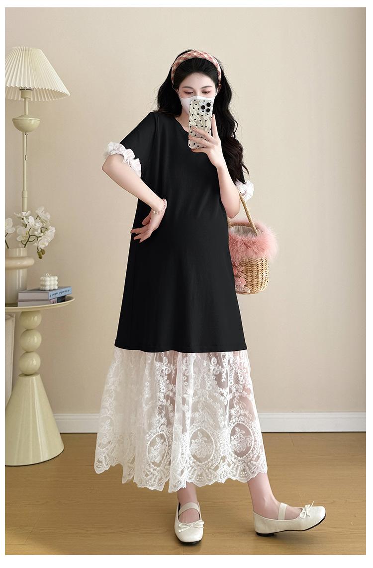 Maternidad 2025 Verano Nuevo Encaje de Punto Costura Suelto Talla Grande Vestido para Mujeres Embarazadas Vestido de Lactancia Postparto