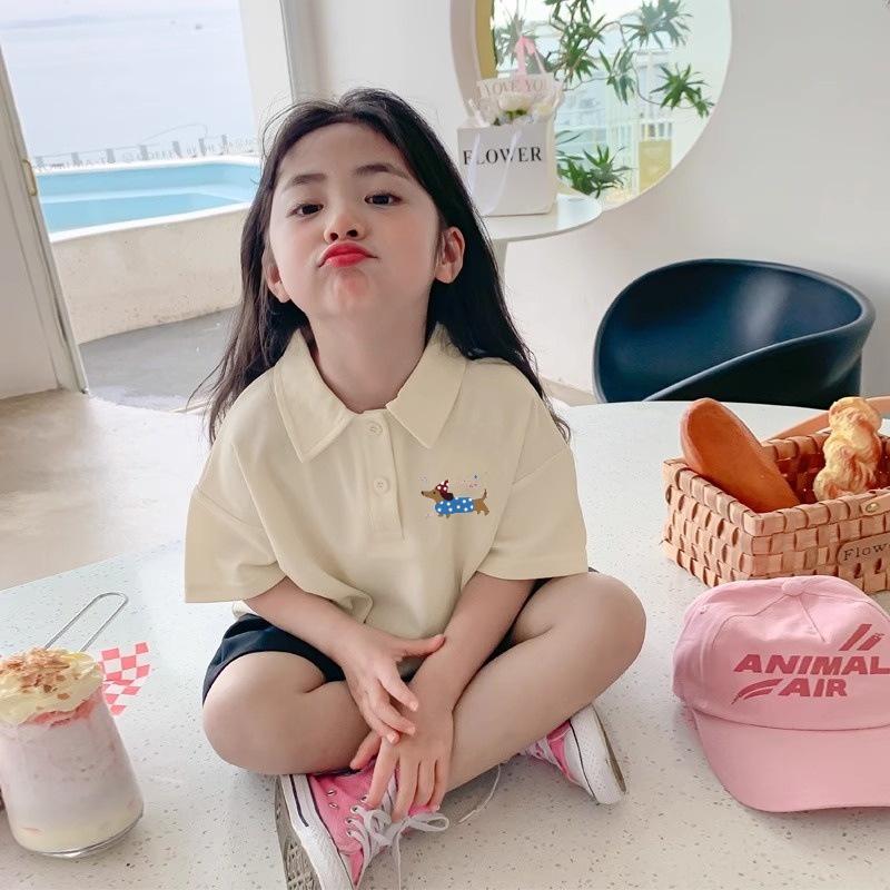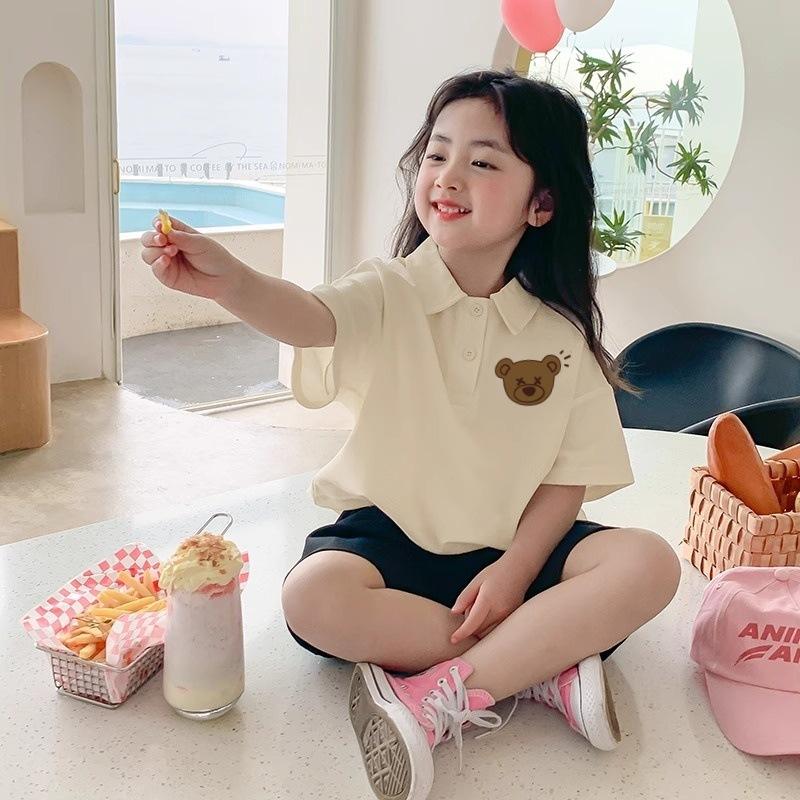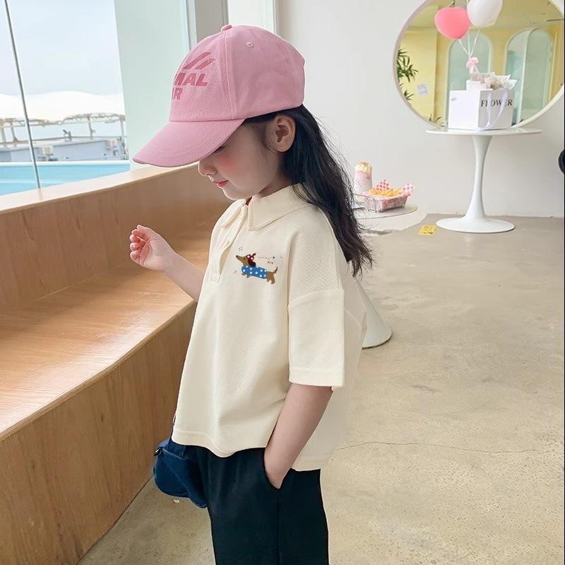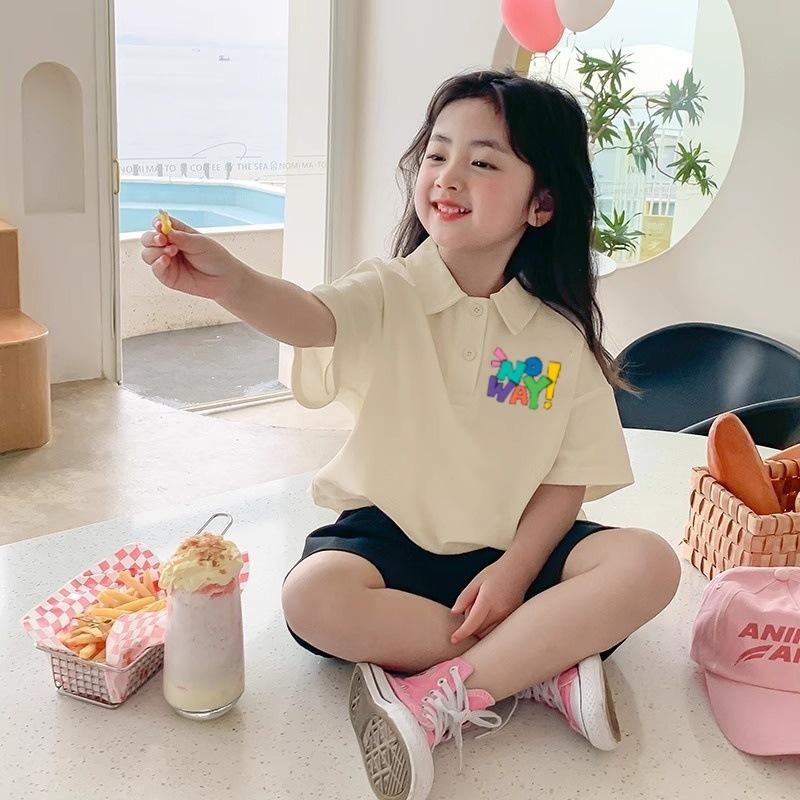 Polo de Manga Corta para Niñas 2025 Verano Moda Trendy Estudiante Camiseta de Solapa Mediana y Grande Niños Verano Tops Casuales