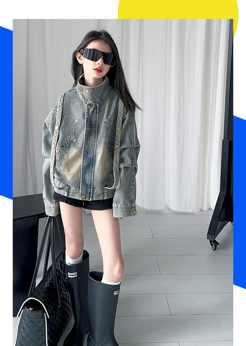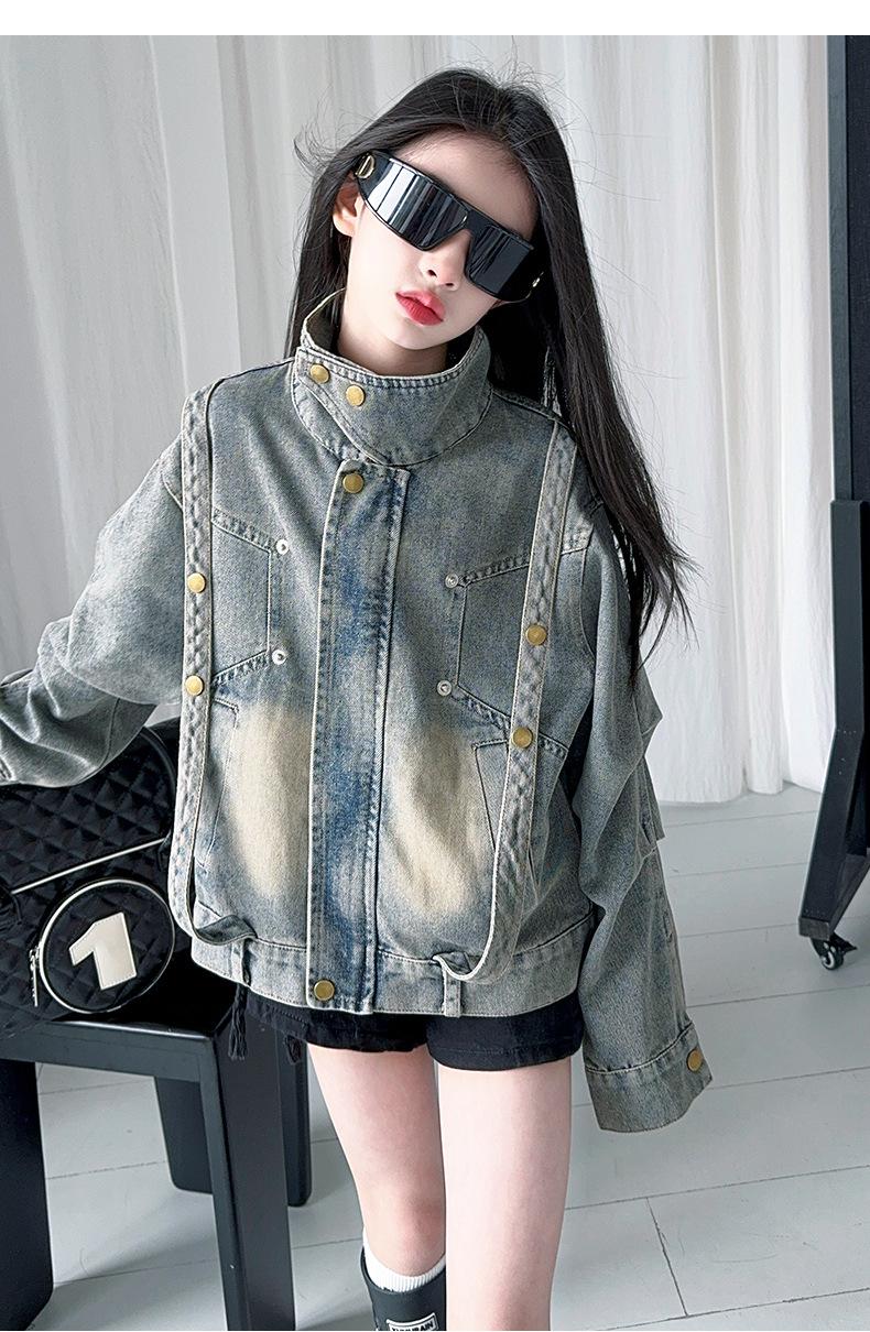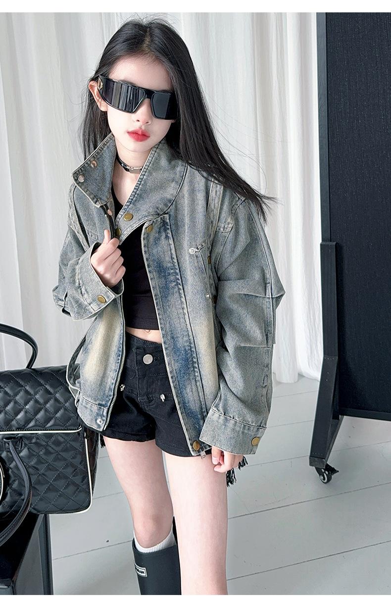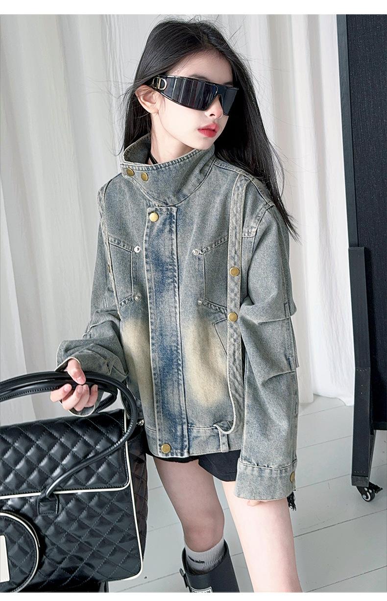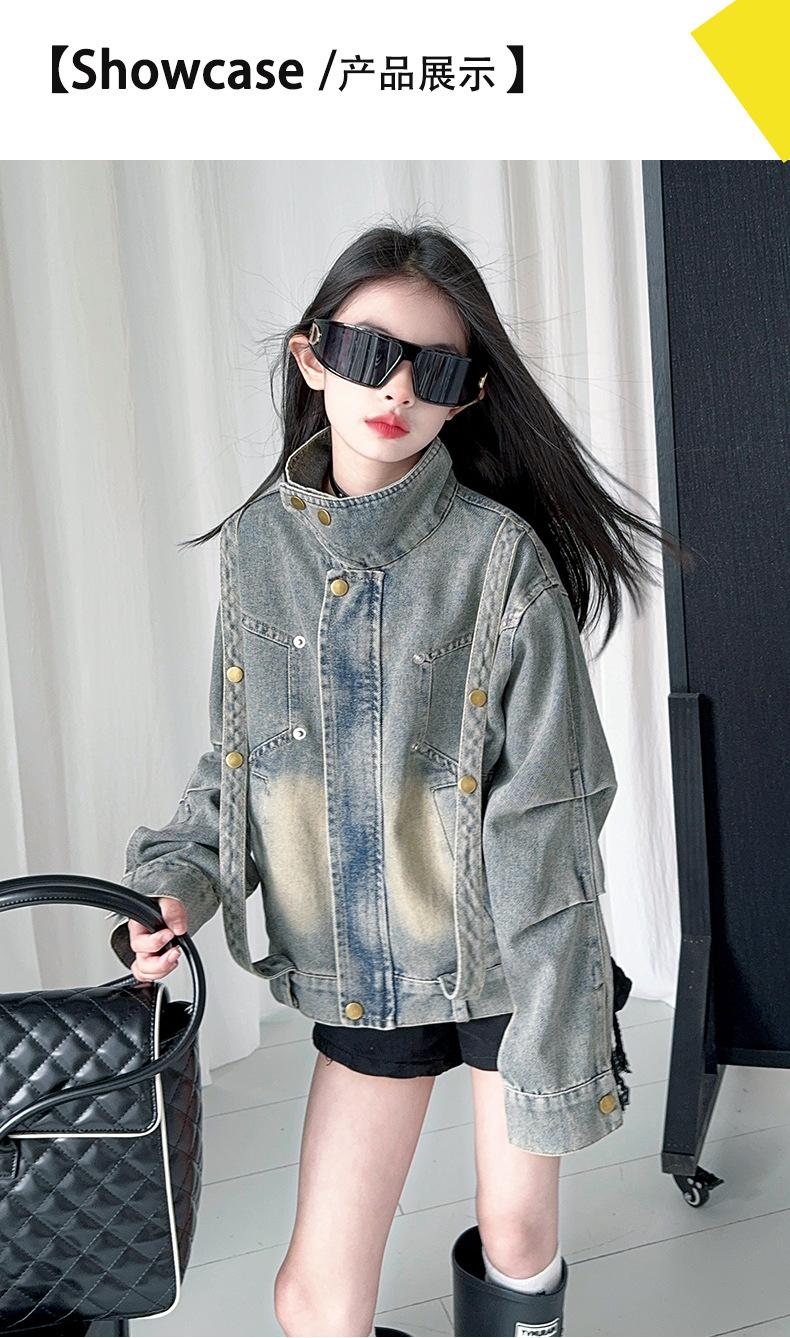 Chaqueta de mezclilla para niña estilo primavera y otoño 2025 nuevo estilo chaqueta de moda para niños top de otoño para niños medianos y grandes tendencia