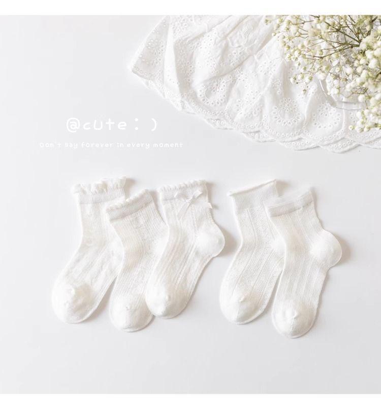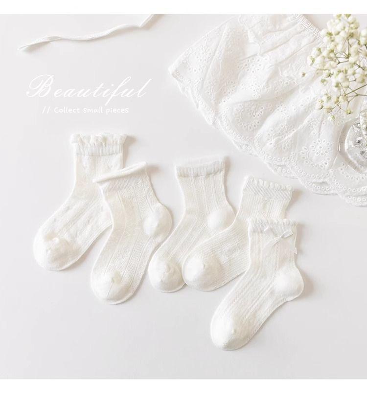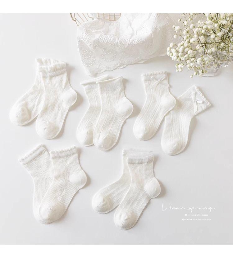 Calcetines para Niñas Primavera y Verano Algodón Fino Calcetines sin Costura para Niños Calcetines de Malla de Verano para Bebé Niña Encaje Blanco Calcetines de Princesa