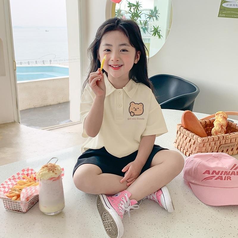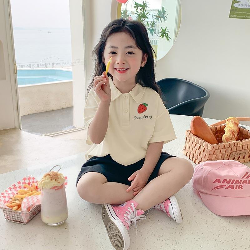 Polo nuevo para niñas 2025 con cuello vuelto, camiseta de verano de dibujos animados para niños grandes, top de manga corta para niños a la moda para el verano