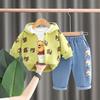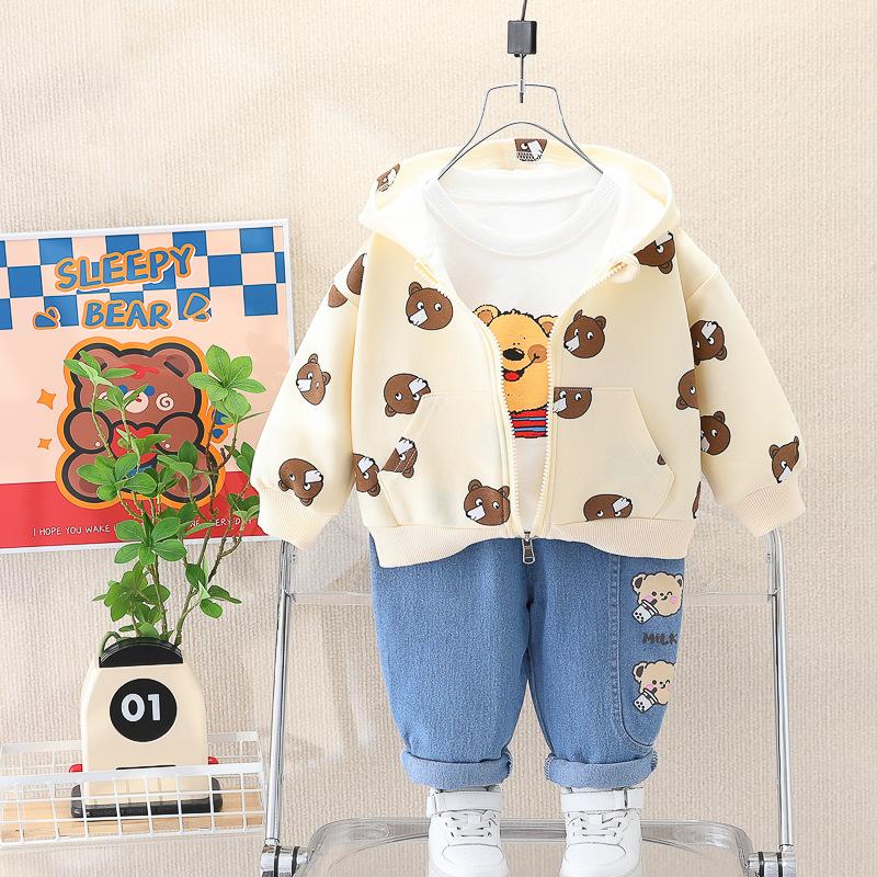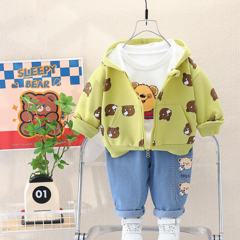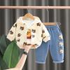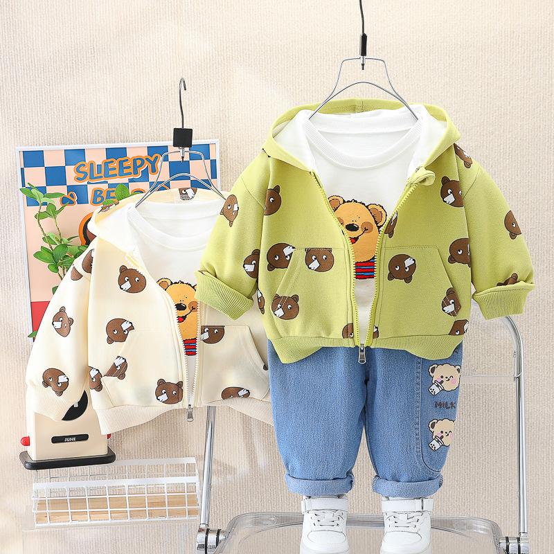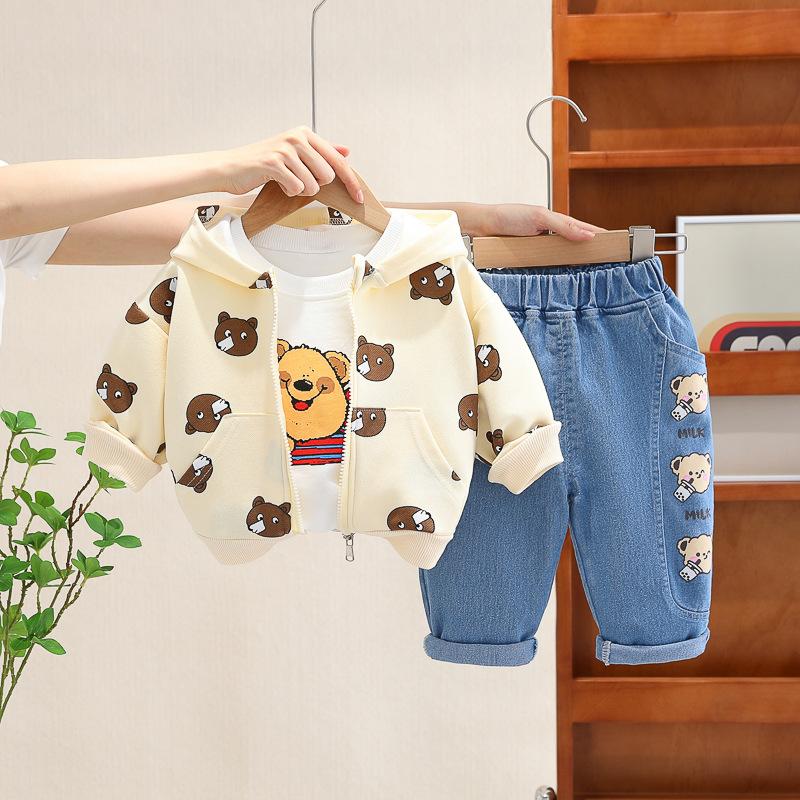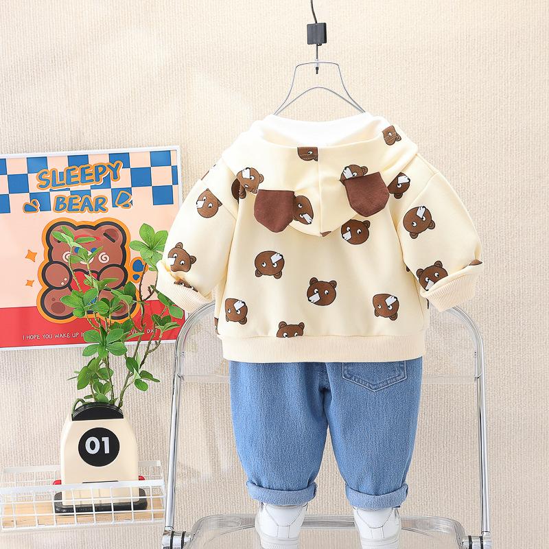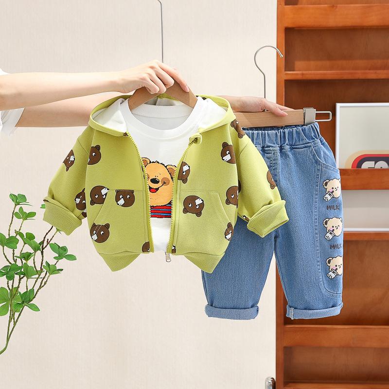 Traje para niño ropa de otoño estilo occidental bebé 2023 nuevo primavera y otoño ropa de bebé abrigo de dibujos animados para niños traje de tres piezas