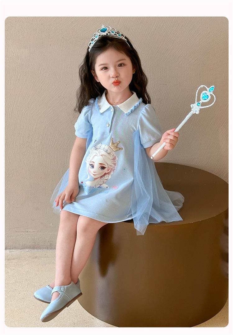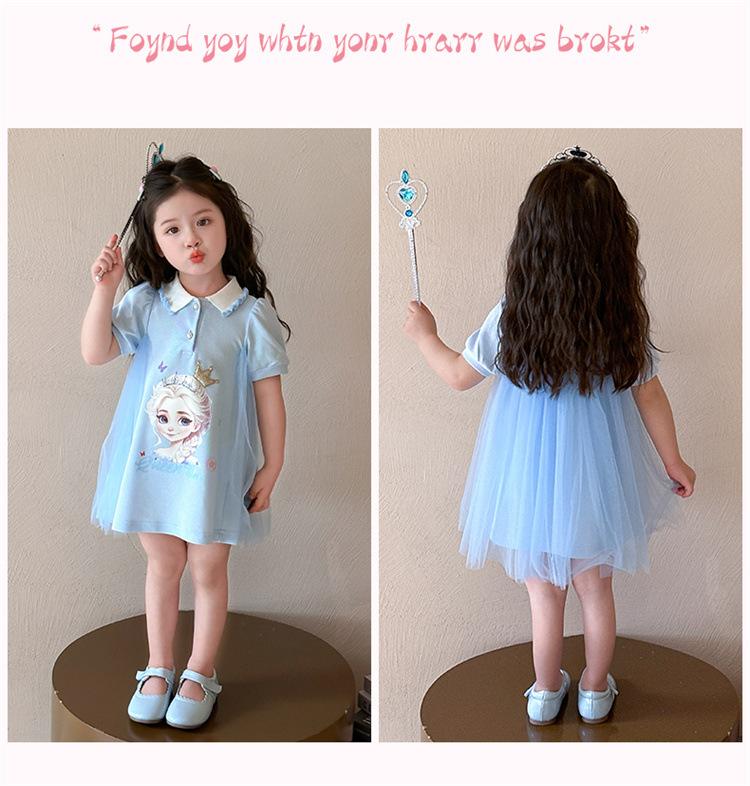 2025 Nuevo Vestido Camiseta para Niñas Primavera y Verano Estilo Coreano Vestido Infantil Vestido de Malla de Manga Corta para Bebé