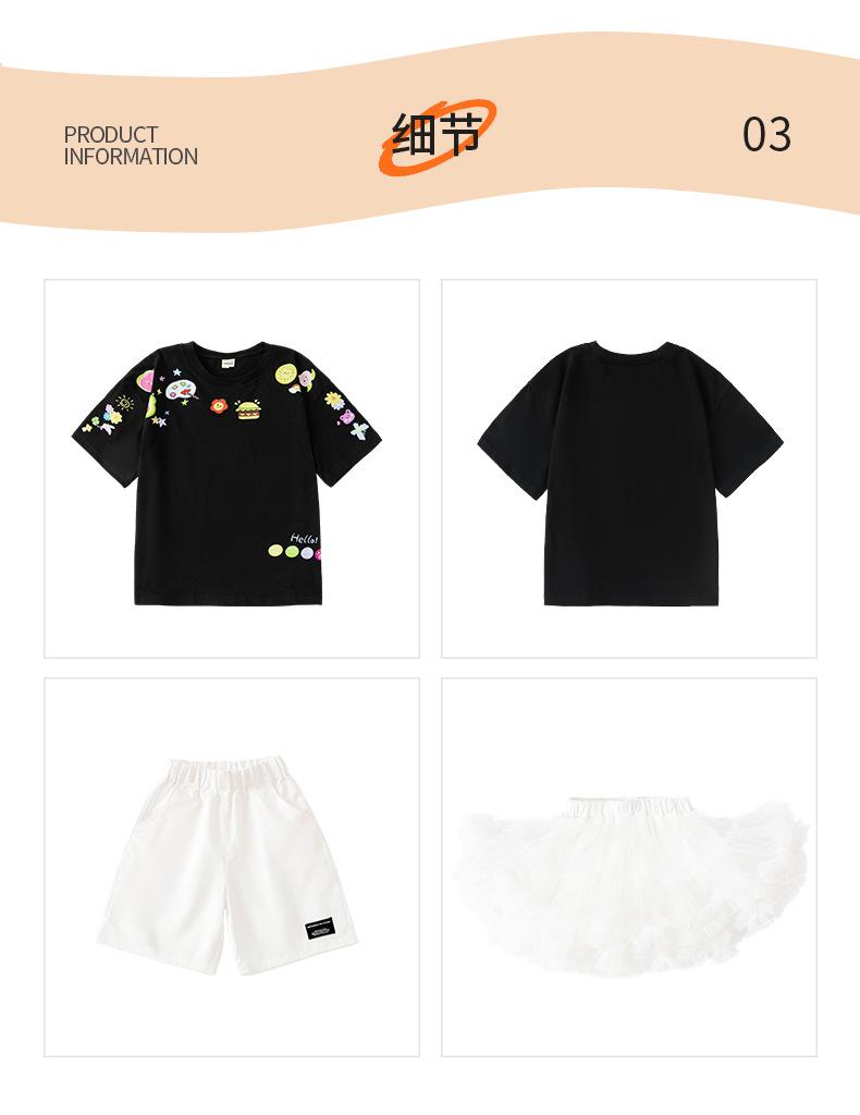 A46 cartoon print black short sleeves + 701 white shorts, A46 cartoon print black short sleeves + 701 white sh...