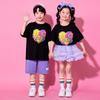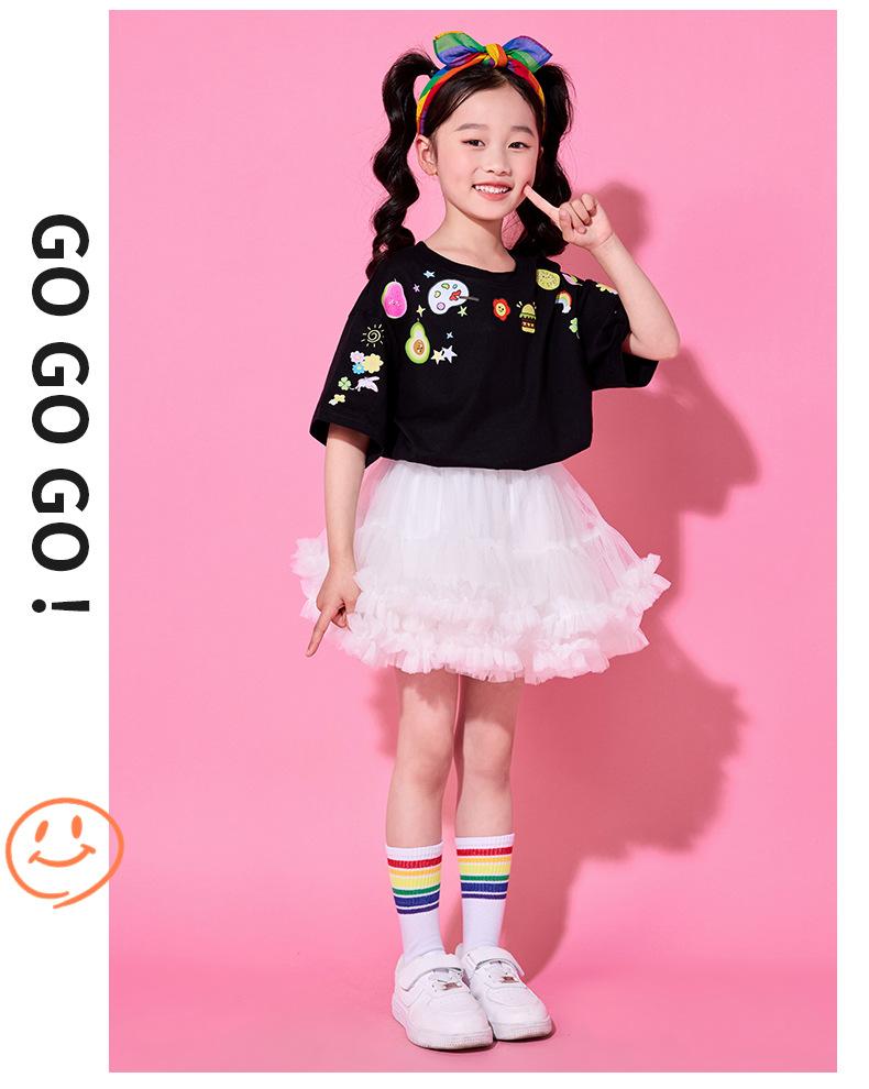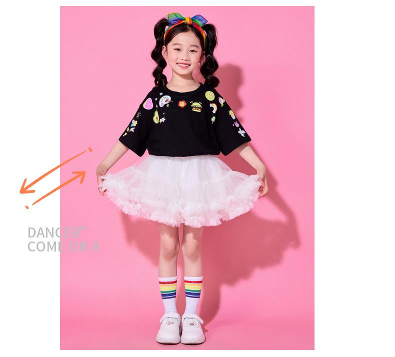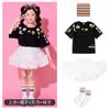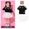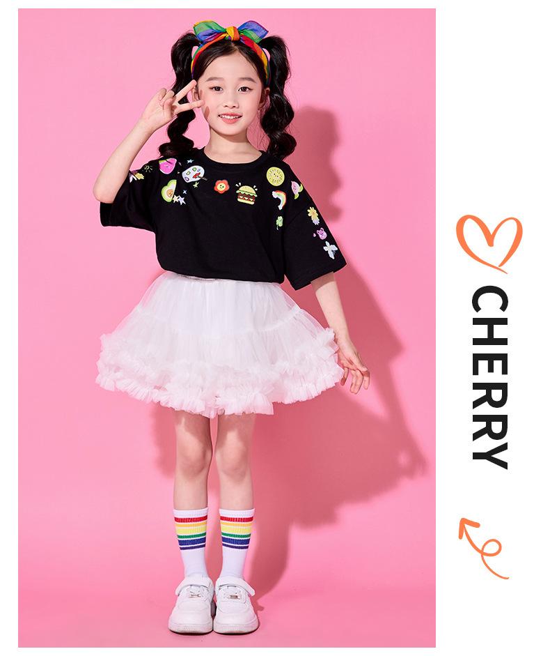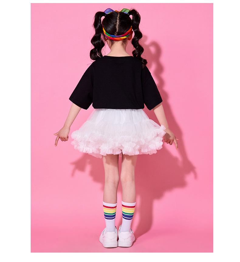 A46 cartoon printed black short sleeves + b06 white convex skirt + rainbow socks