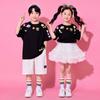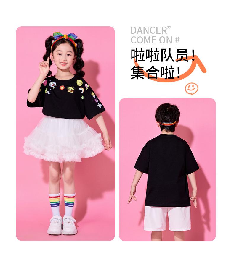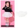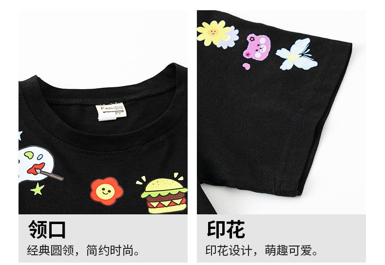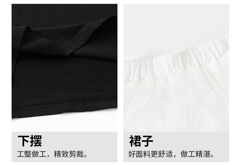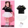 A46 cartoon print black short sleeves + b06 white convex skirt