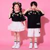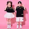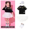 A46 cartoon printed black short sleeves + b06 white convex skirt + white baseball cap
