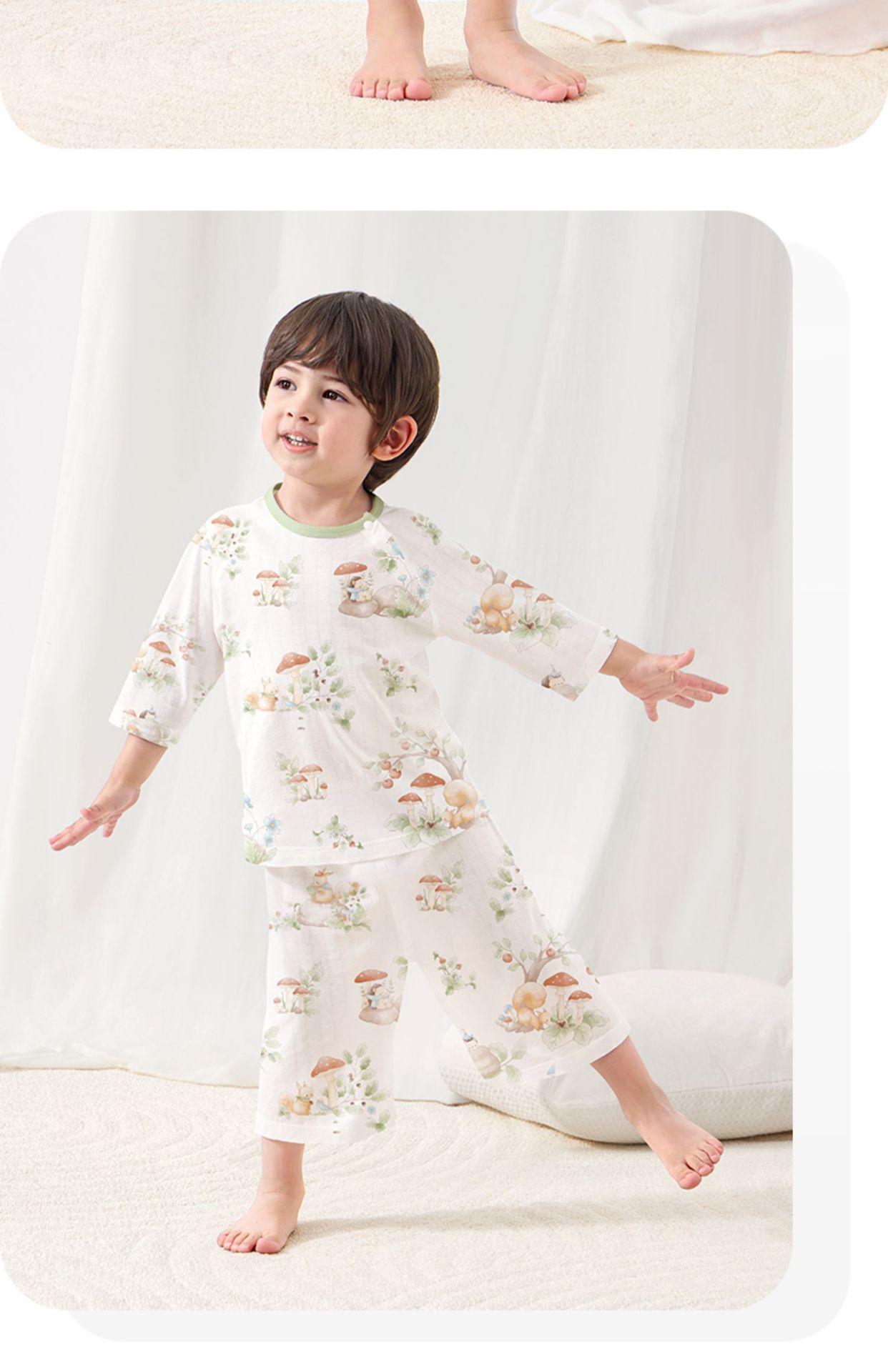 Pijamas para Niños Niñas Nuevos Ropa para el Hogar Pantalones Siete Puntos Traje para Aire Acondicionado Conjunto Delgado de Verano Pijamas para Bebé
