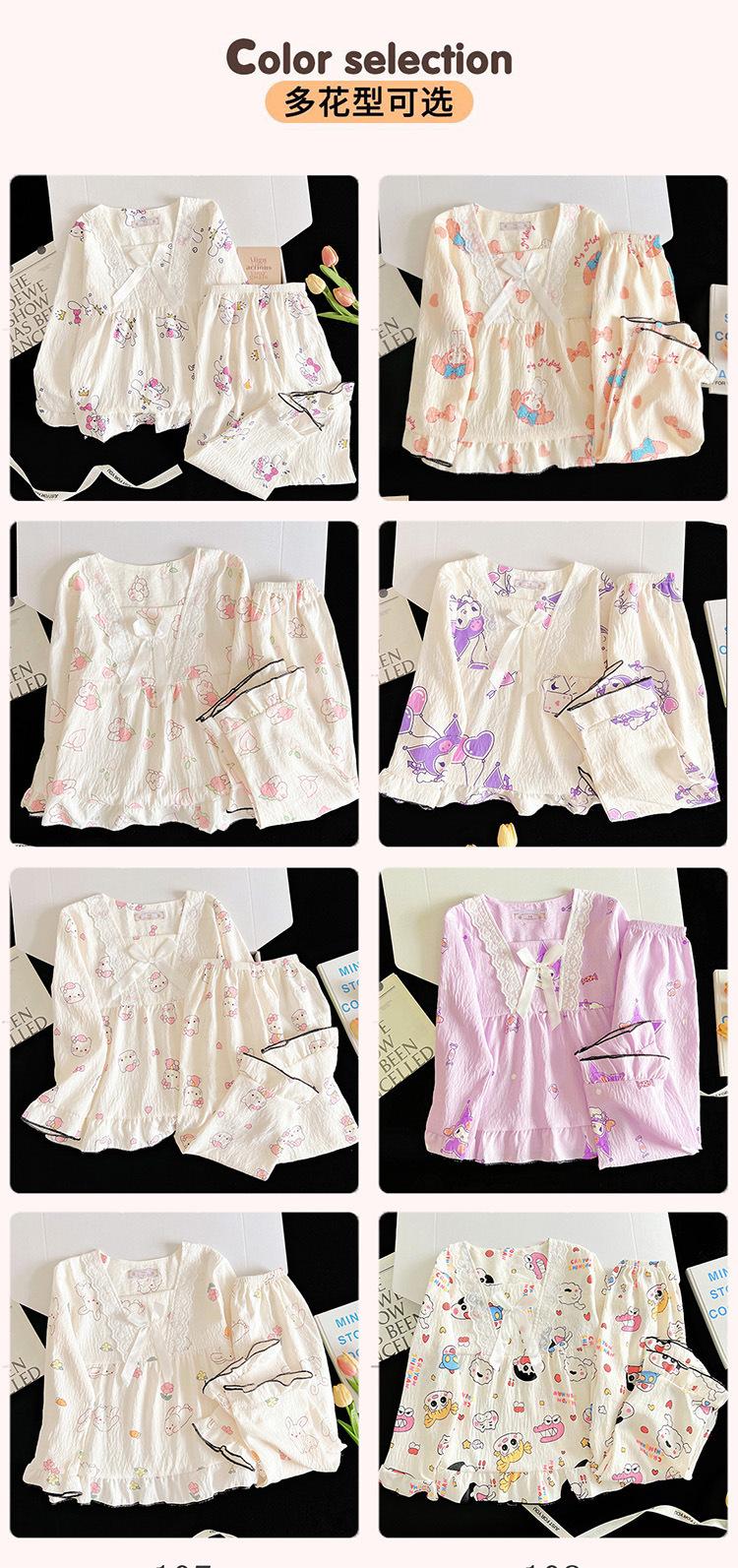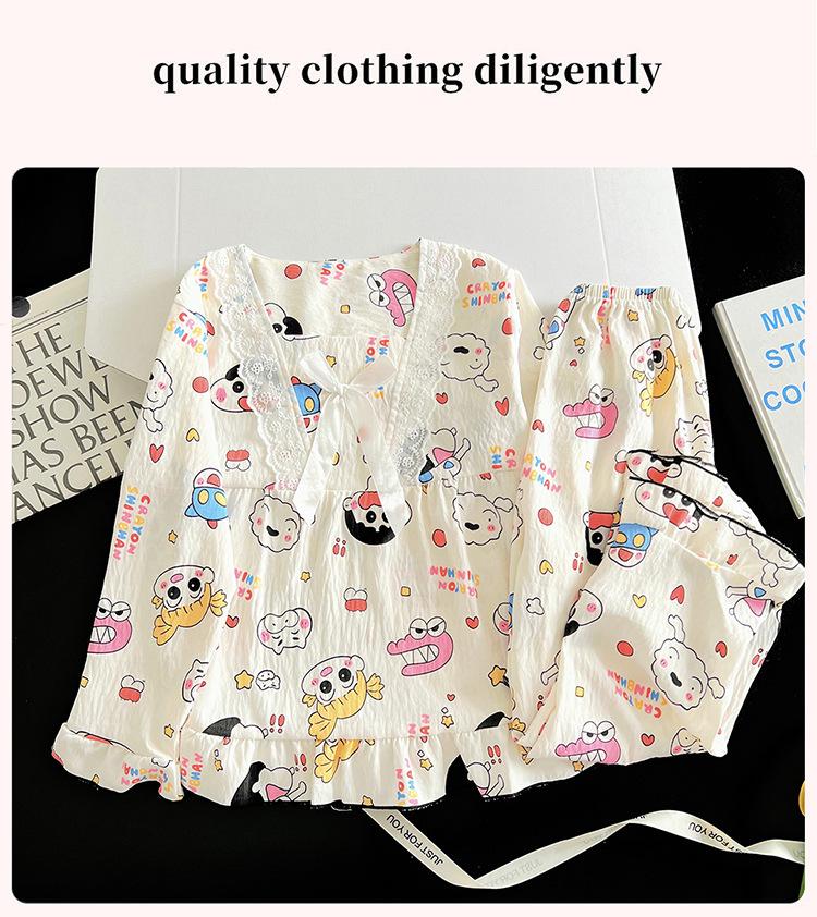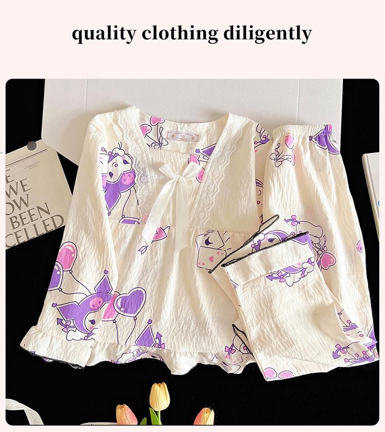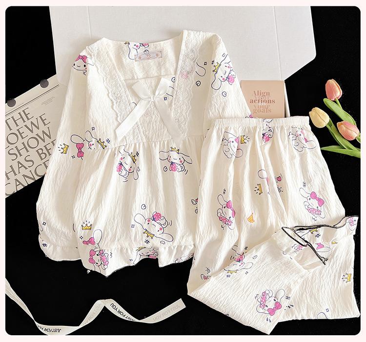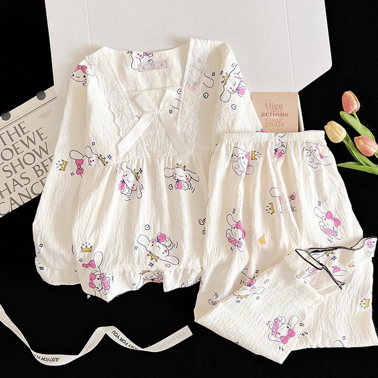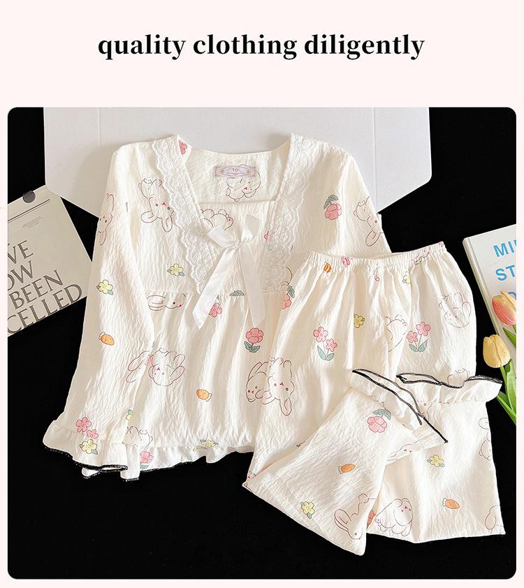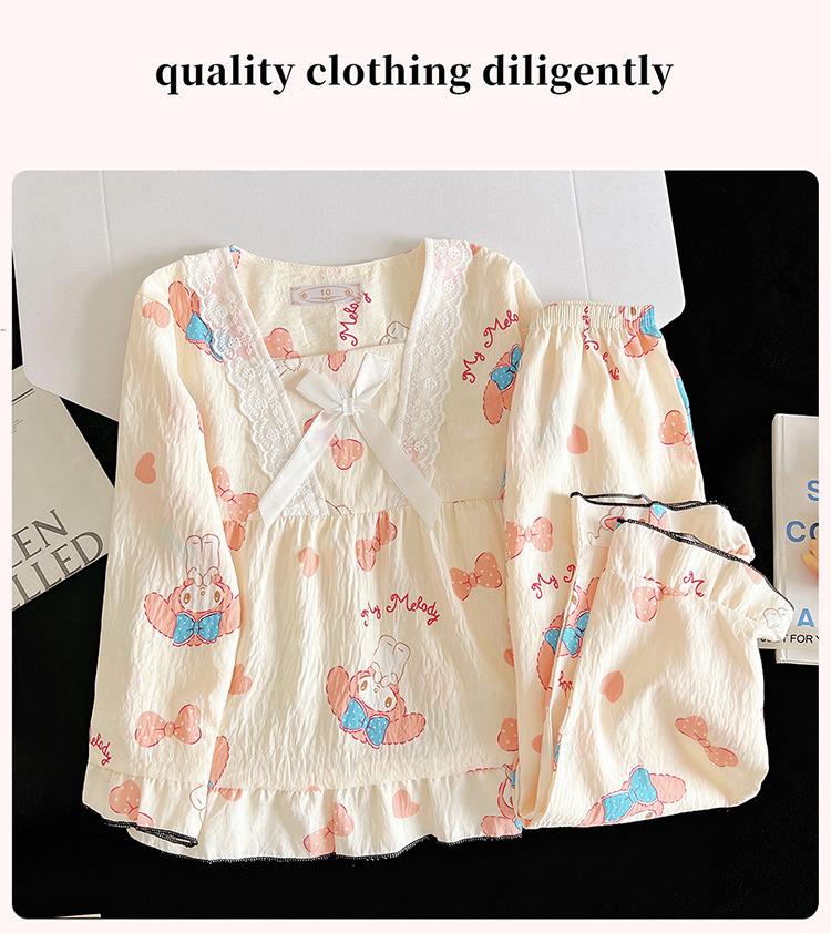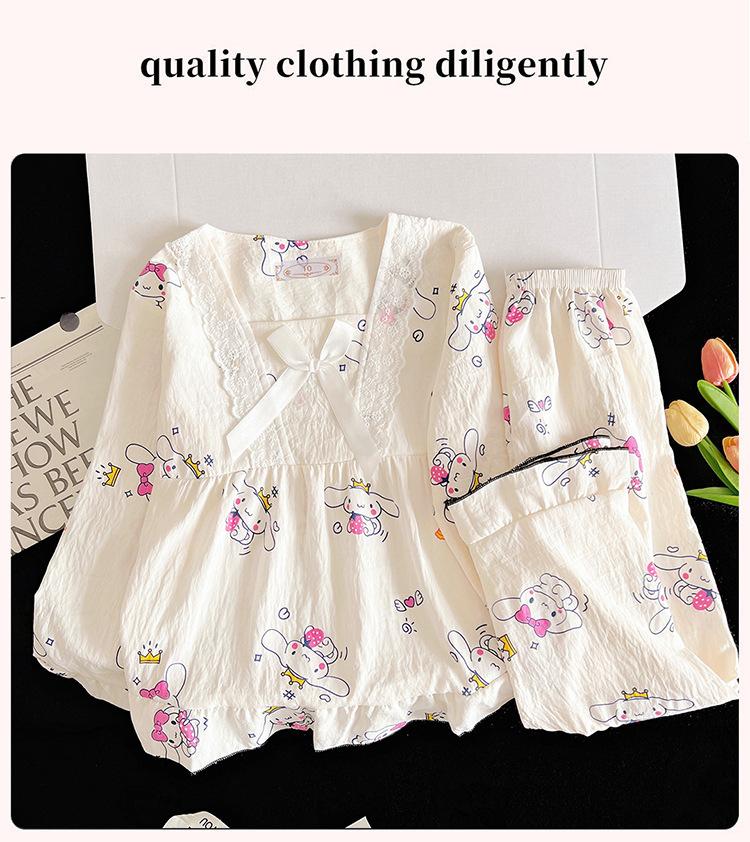 Pijamas para Niñas Estilo Princesa Algodón Nube Manga Larga Cuello Cuadrado Nuevos Delgados Casuales Lindos Pijamas Ropa de Casa
