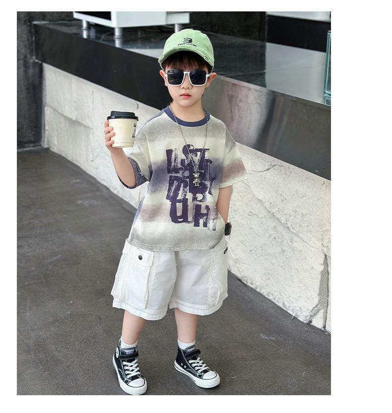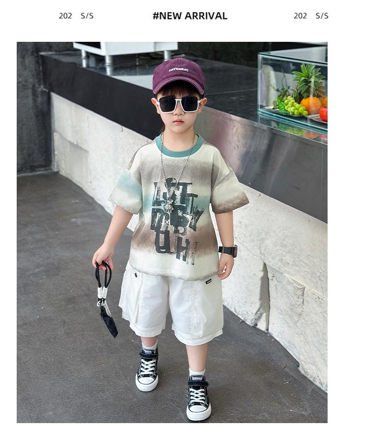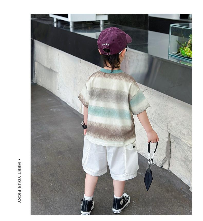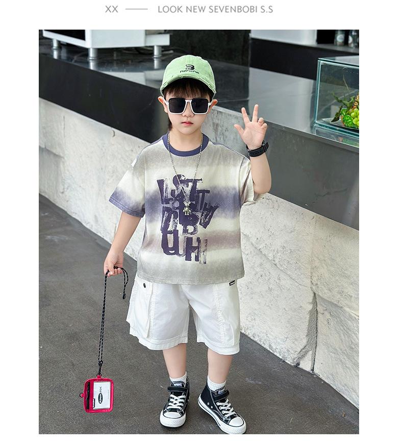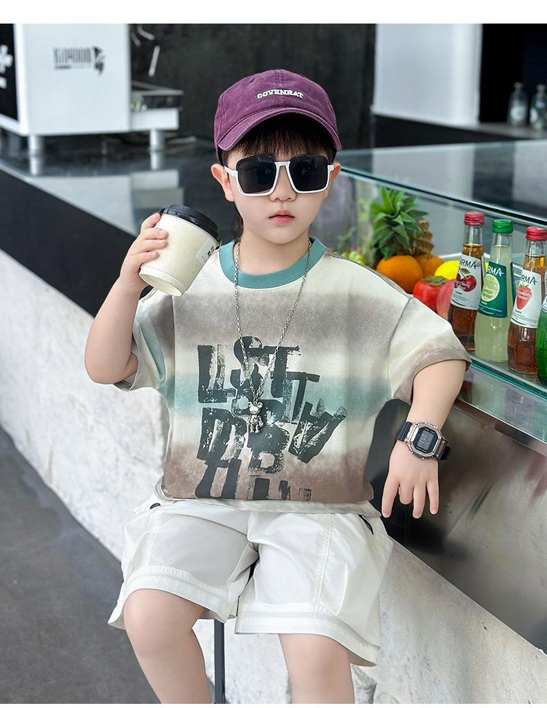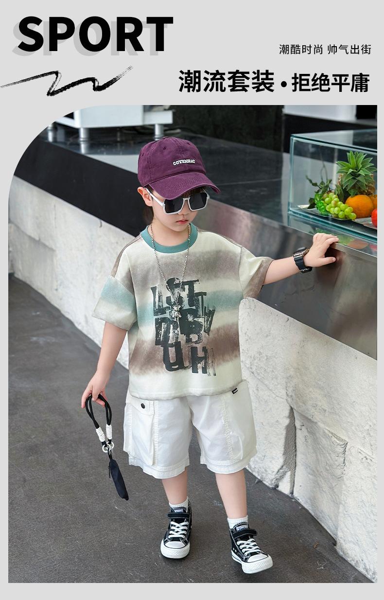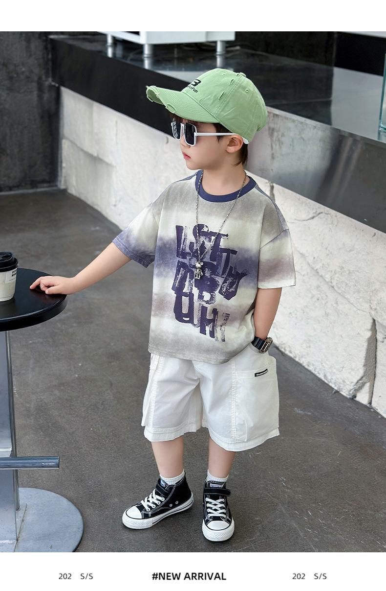 Traje de Verano de Manga Corta para Niño 2025 Nuevo Bebé Moda Ropa Fresca Niños Pequeños Celebridad de Internet Calle Tendencia Ropa de Verano