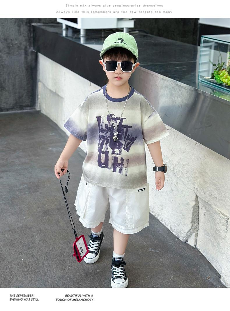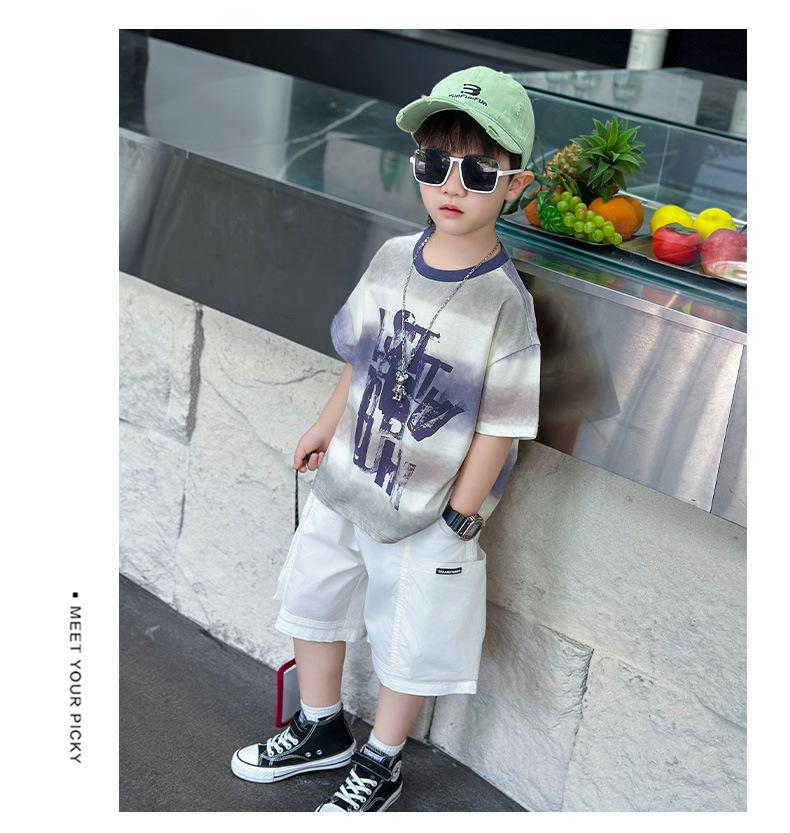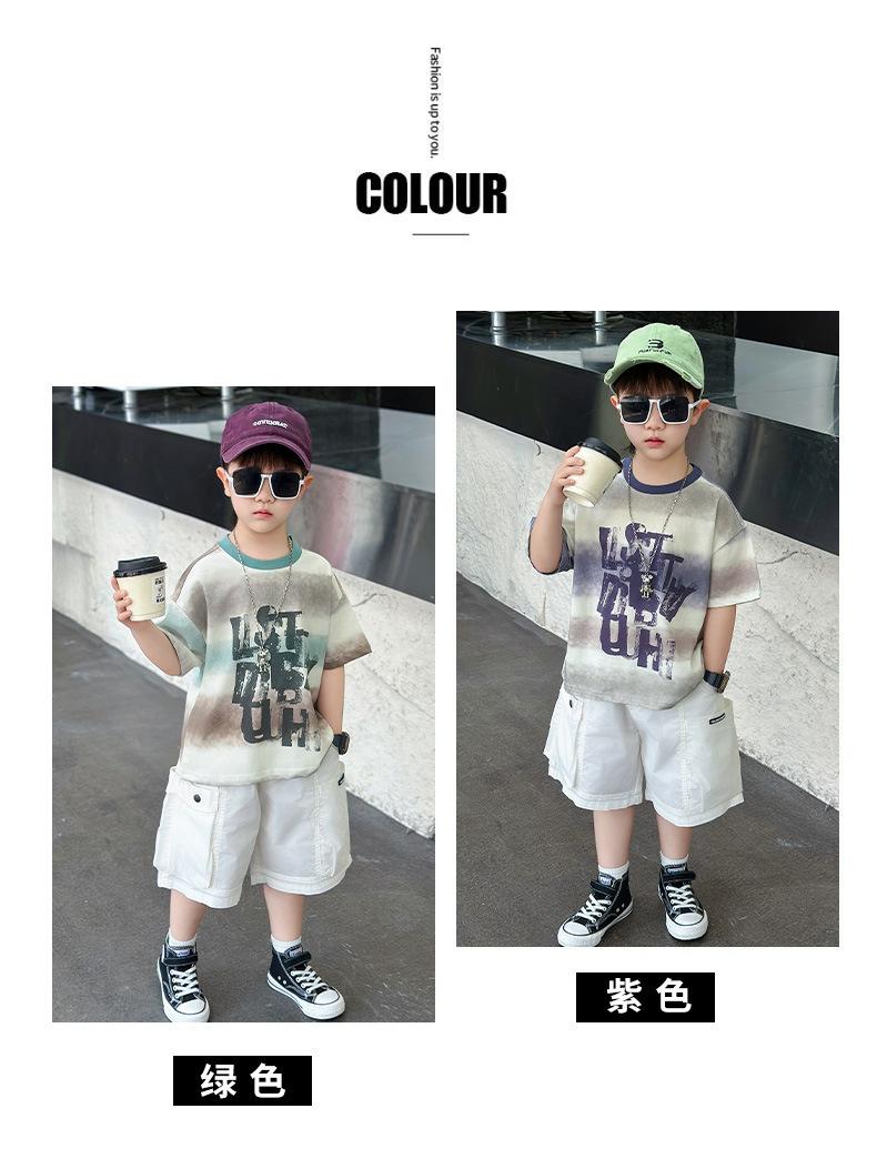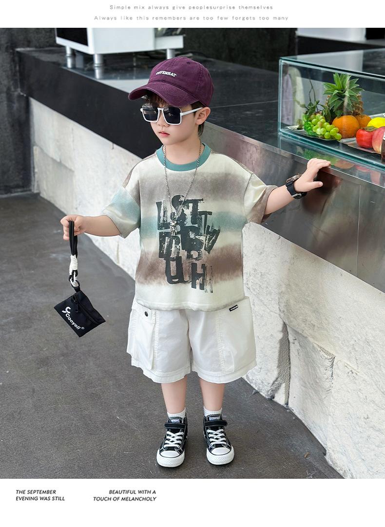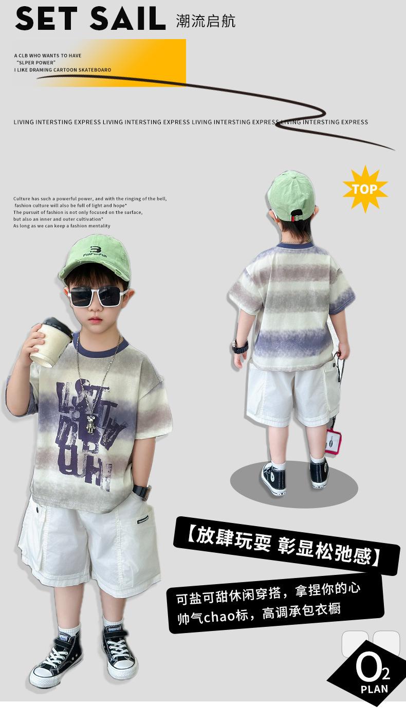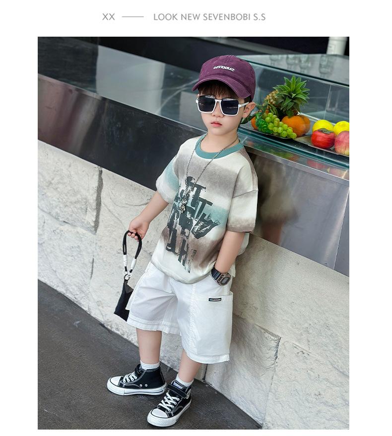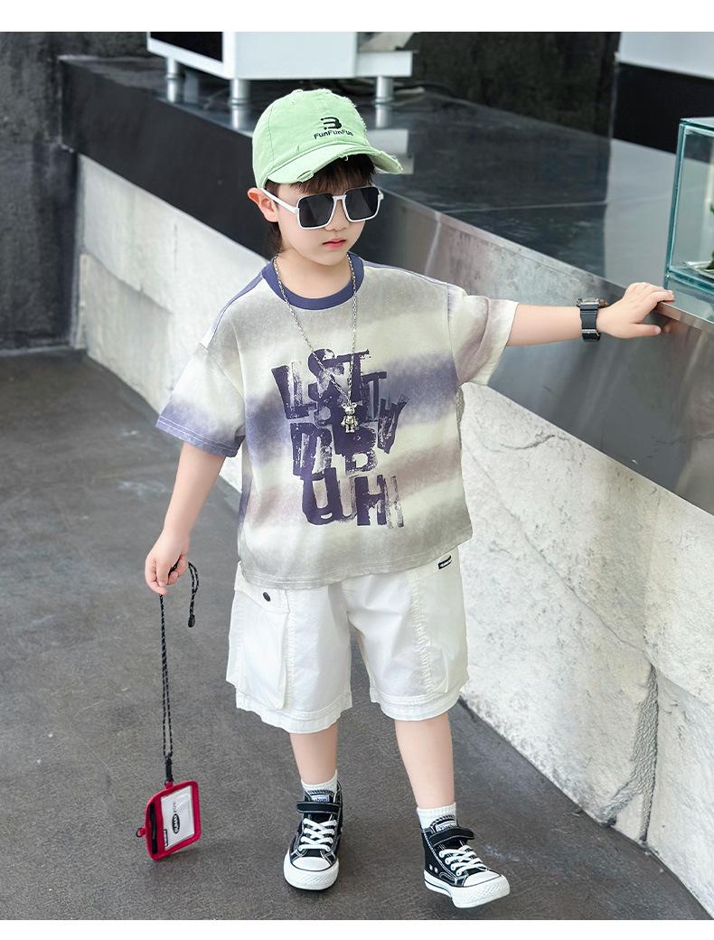 Traje de Verano de Manga Corta para Niño 2025 Nuevo Bebé Moda Ropa Fresca Niños Pequeños Celebridad de Internet Calle Tendencia Ropa de Verano