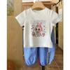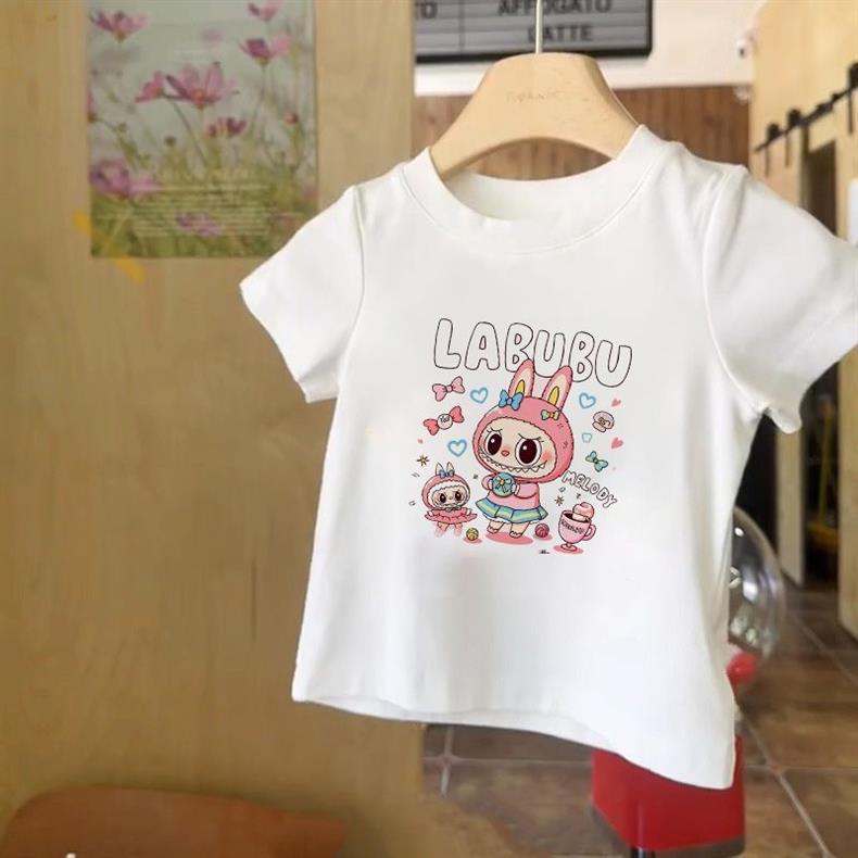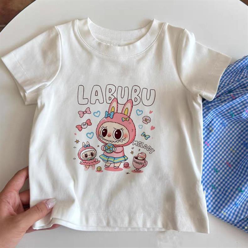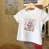 Camiseta de manga corta para niños 2025 verano nuevo estilo para niños pequeños y medianos, linda caricatura de moda con estampado, top de cuello redondo, camiseta básica