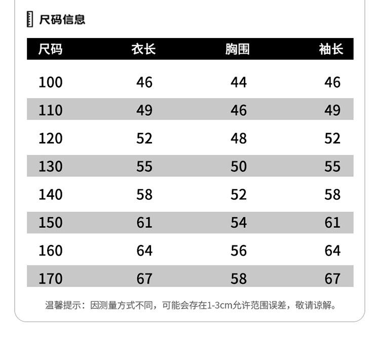 100cm, 110cm, 120cm, 130cm, 140cm, 150cm, 160cm, 170cm