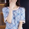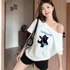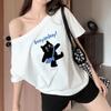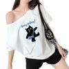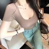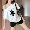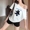 Algodón Porcelana de Hielo 32 Hilos Algodón Puro Lycra 200 Gramos 95% Algodón 5% Spandex Verano Estilo Coreano Inclinada Hombro Descubierto Manga Corta Camiseta de Mujer