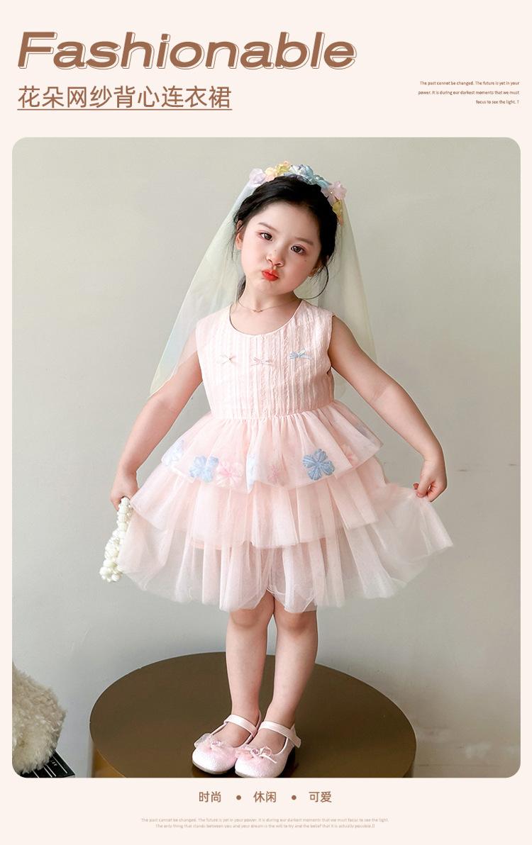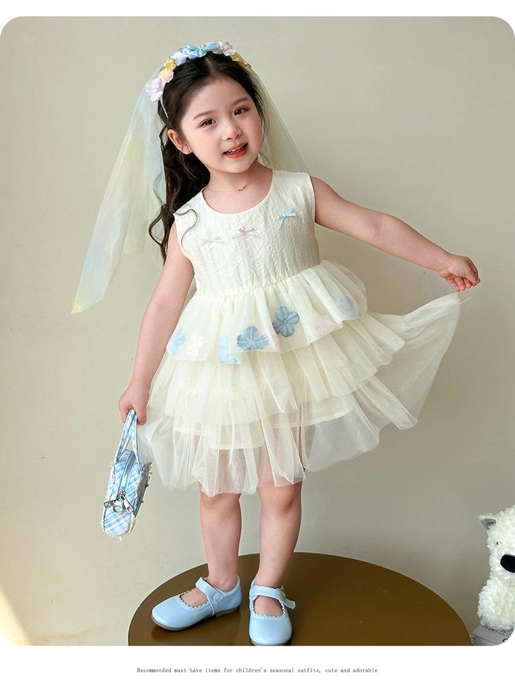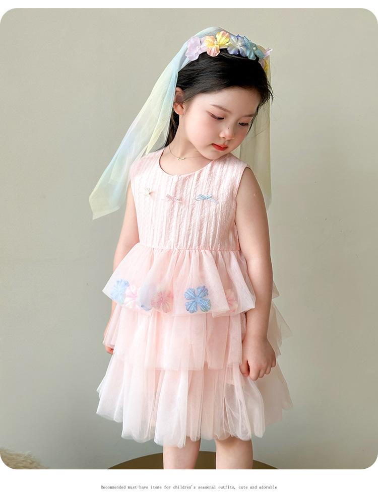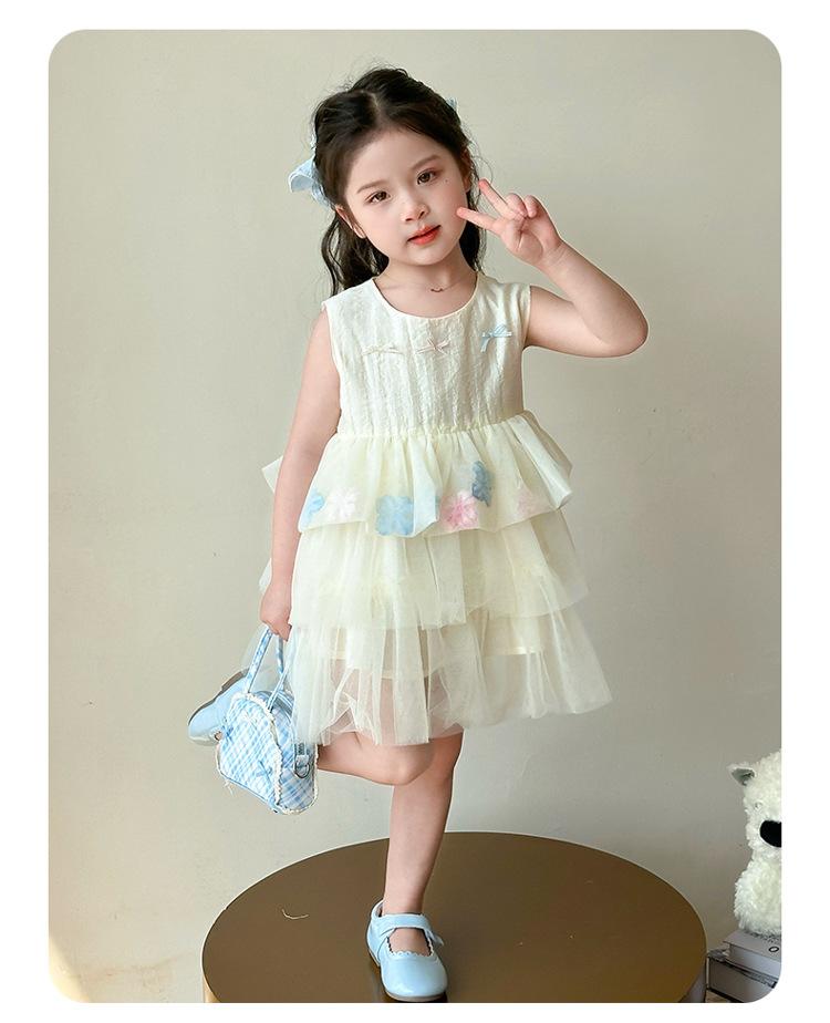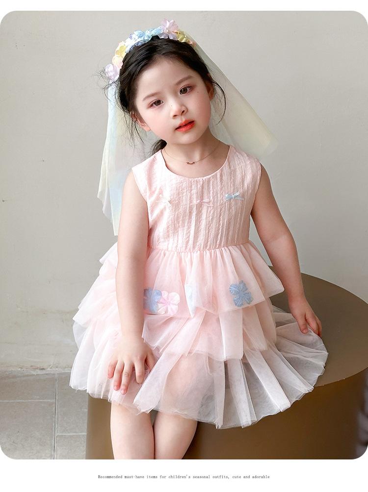 Vestido de Niña Vestido de Verano 2025 Nuevo Vestido de Pastel de Malla para Niños Estilo Occidental Vestido Delgado de Princesa de Verano para Bebé