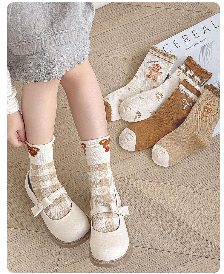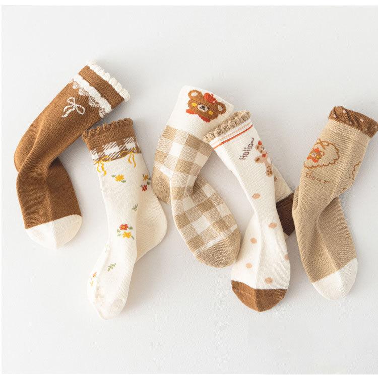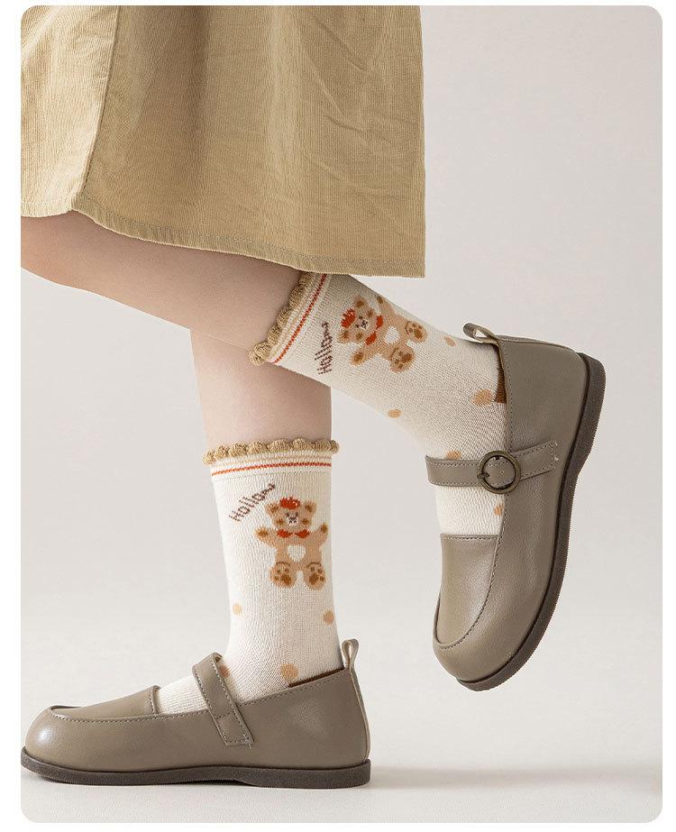 Calcetines Nuevos de Primavera y Otoño 2025 para Niñas Calcetines de Algodón para Niños Calcetines de Media Caña Calcetines Suaves de Oso de Dibujos Animados para Niños Venta al por Mayor