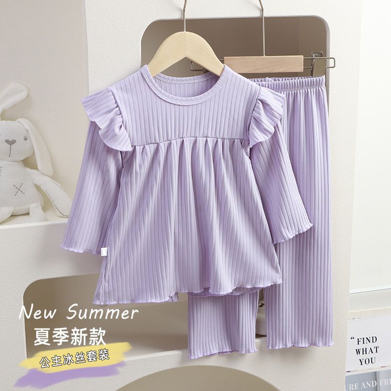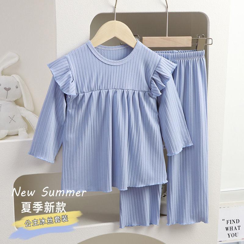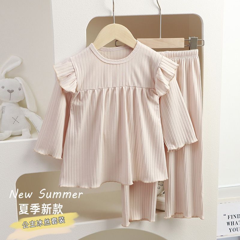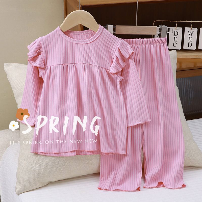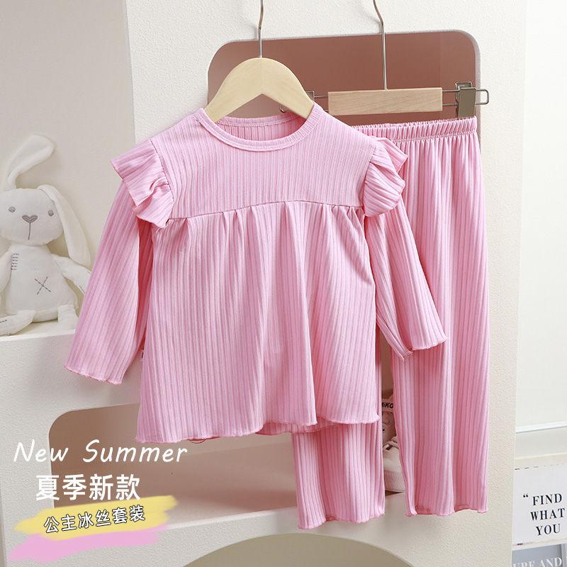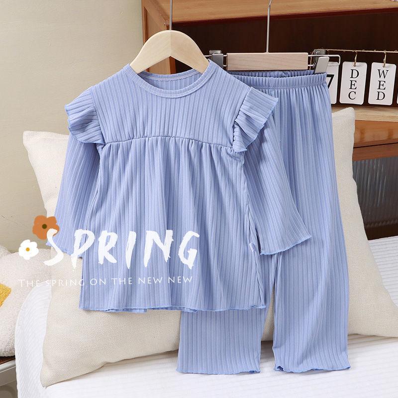Nuevo Conjunto de Pijama para Niñas 2025 Manga Larga Estilo Delgado Ropa para el Hogar Conjunto de Dos Piezas Traje de Aire Acondicionado para Bebés Niñas Niños Pequeños y Medianos a la Moda
