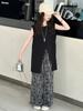 Traje de Verano sin Mangas para Niñas 2025 Nuevo Estilo Relajado Moda Elegante Retro para Niñas Pantalones de Pierna Ancha Conjunto de Dos Piezas