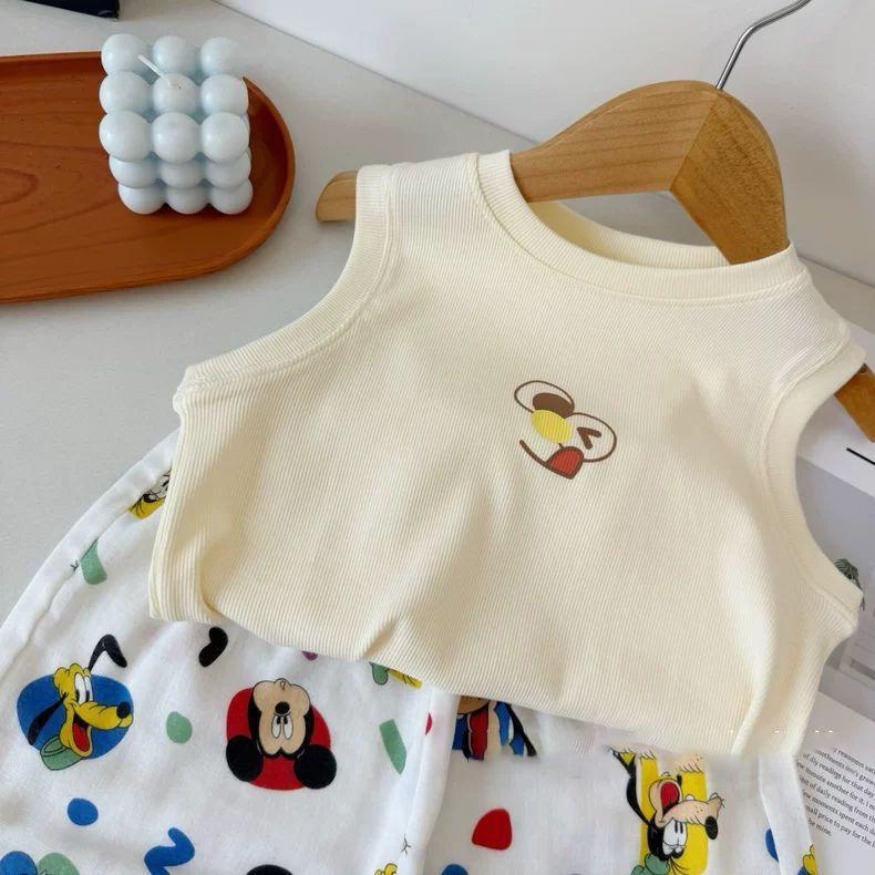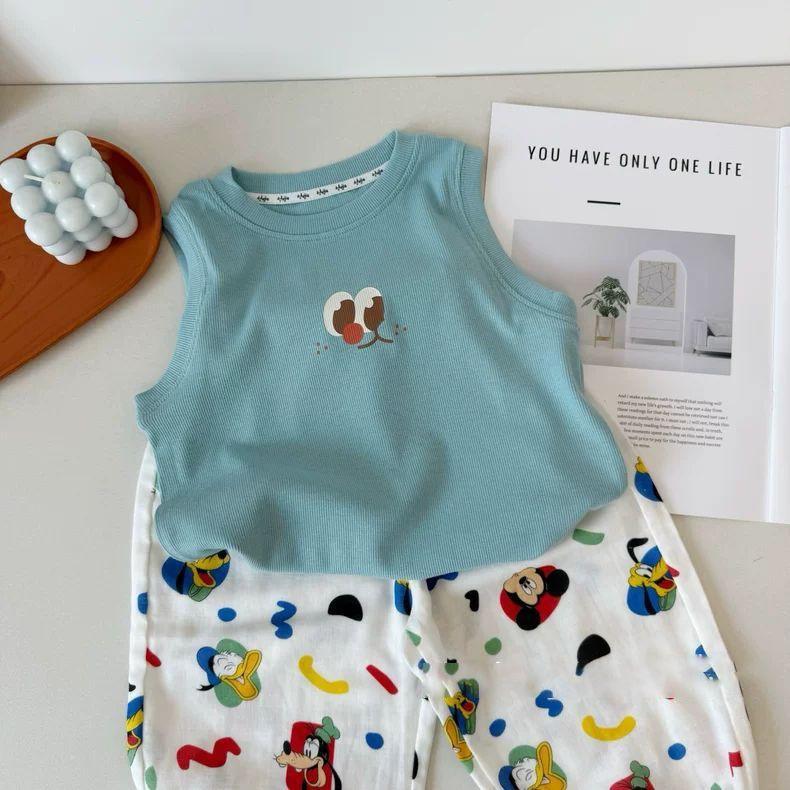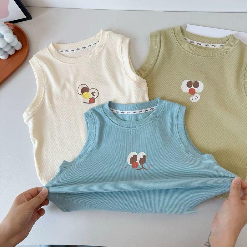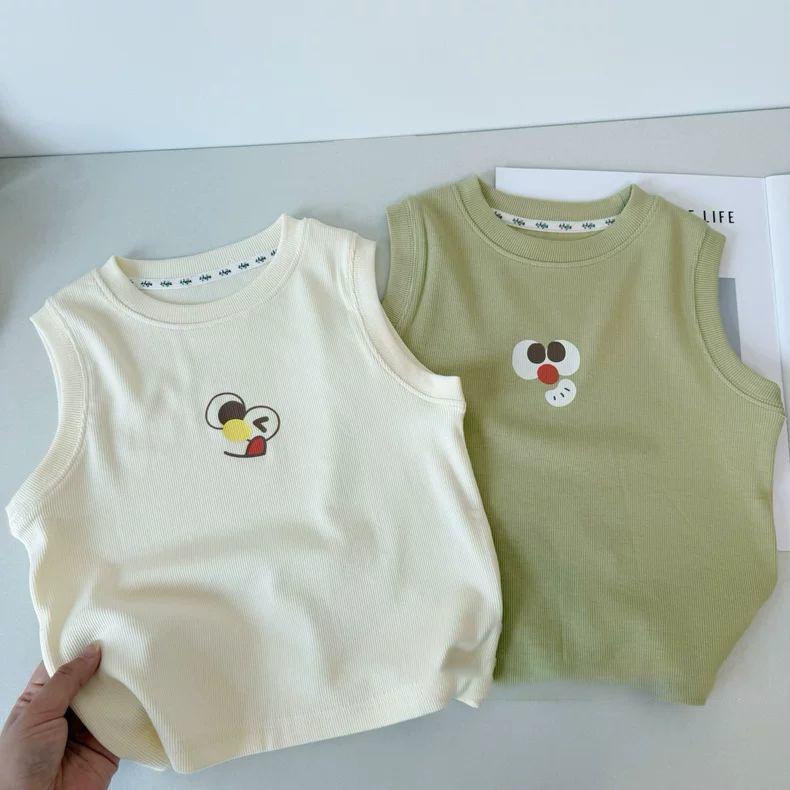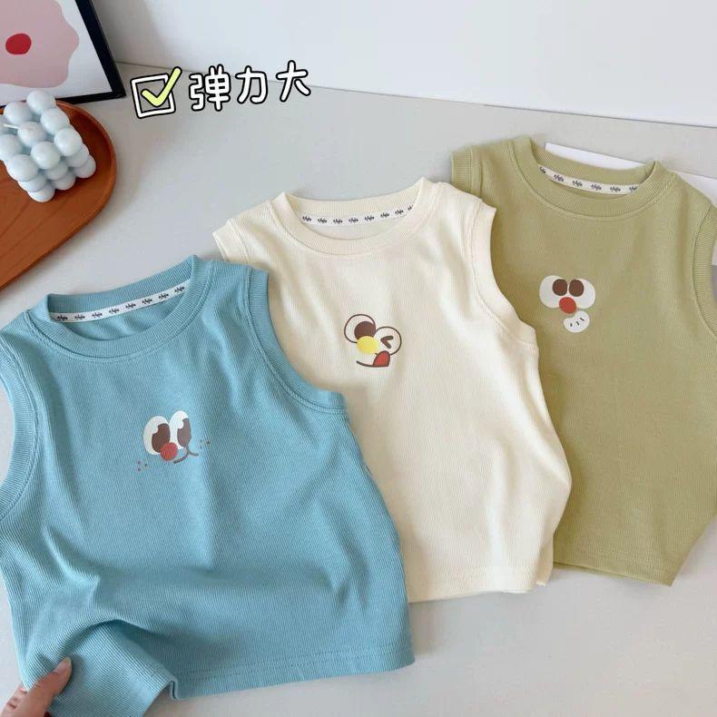Chaleco de Verano para Niños y Niñas Moda Bebé Personalidad Infantil Moderna Estilo Coreano Estampado de Dibujos Animados Fresco Camiseta sin Mangas Top