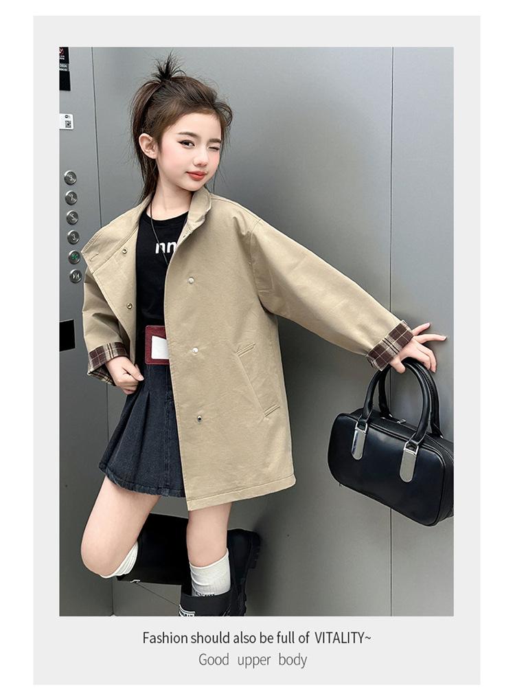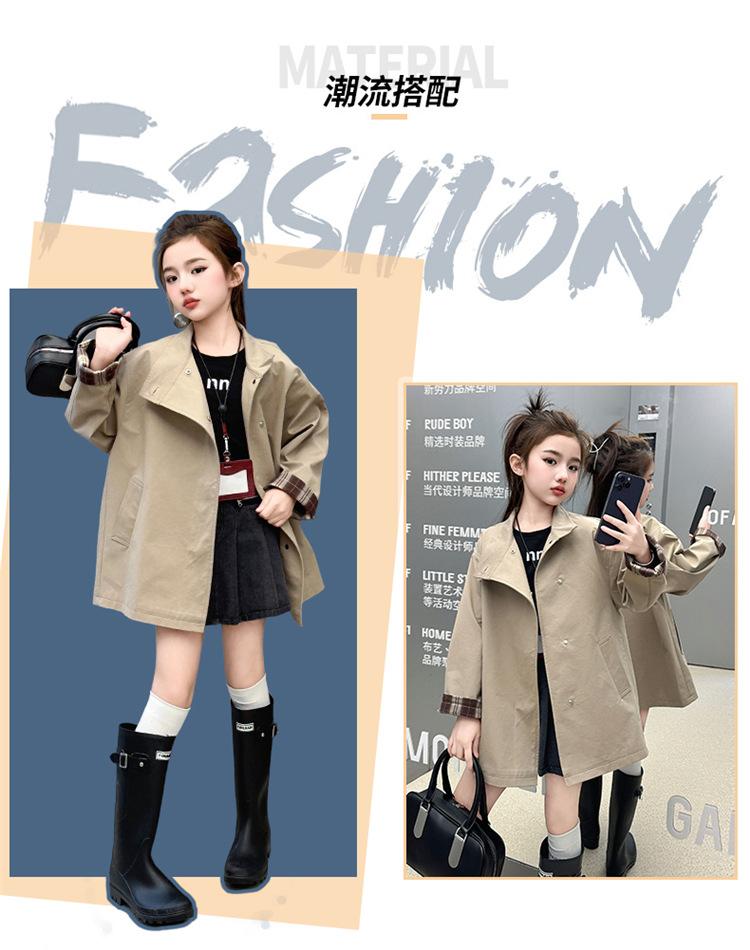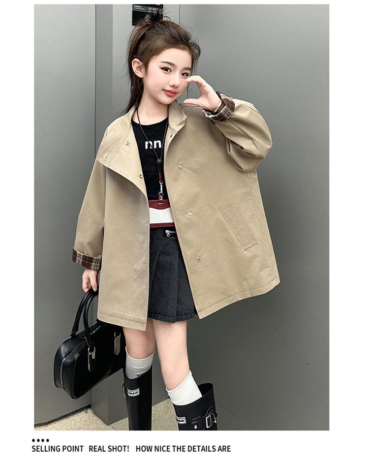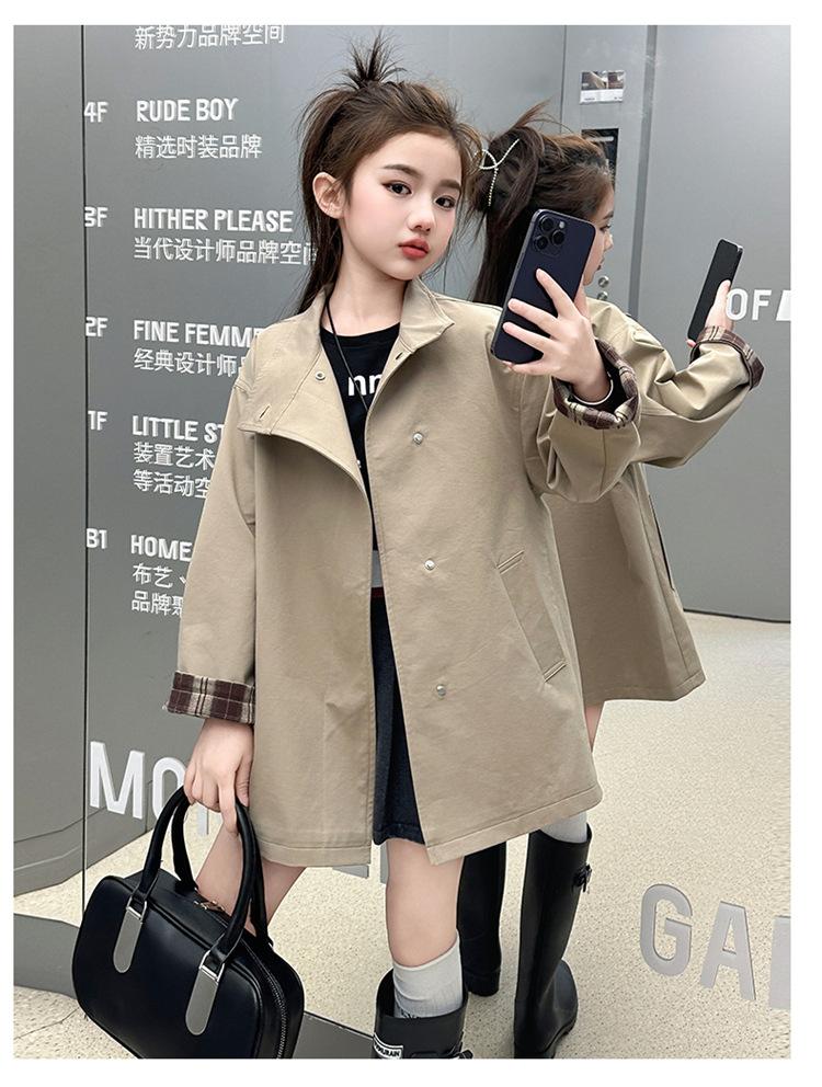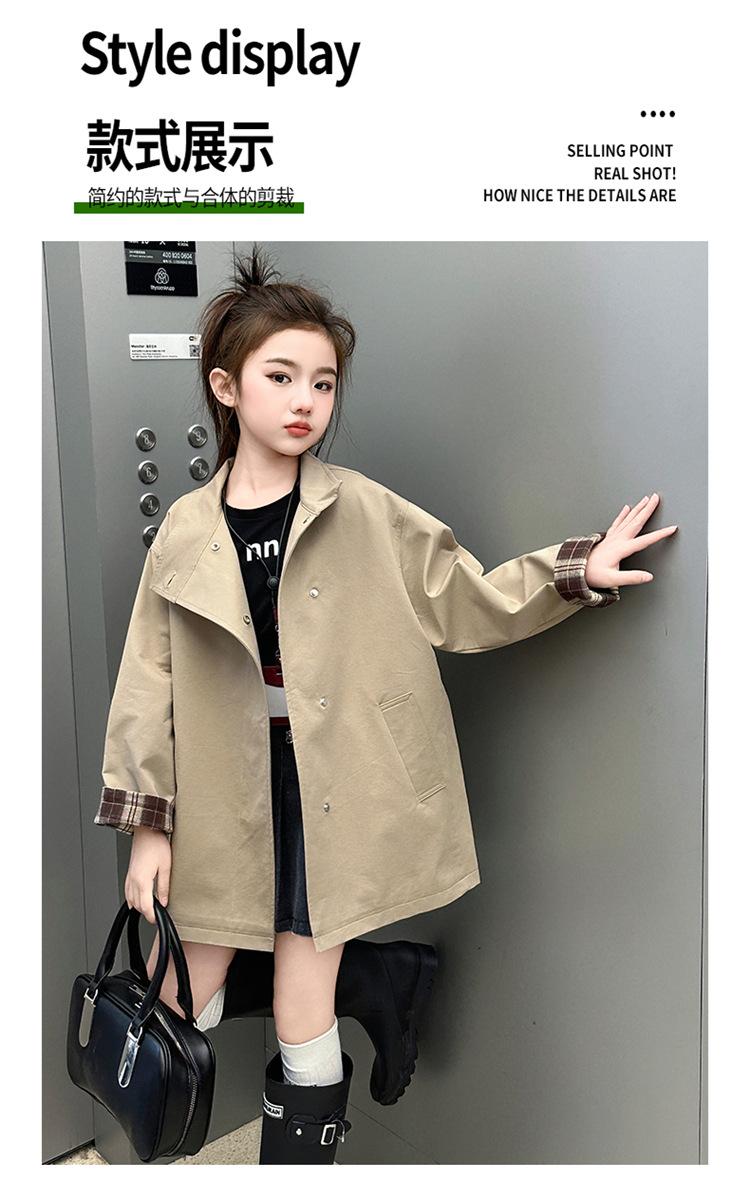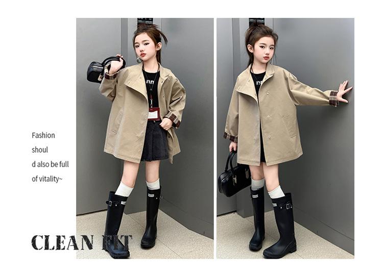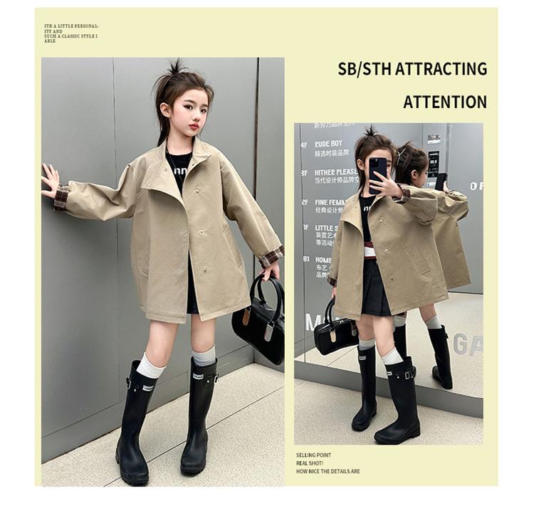 Abrigo trench para niña estilo primavera y otoño 2025 nuevo abrigo infantil de longitud media estilo británico ropa de primavera top para niña pequeña