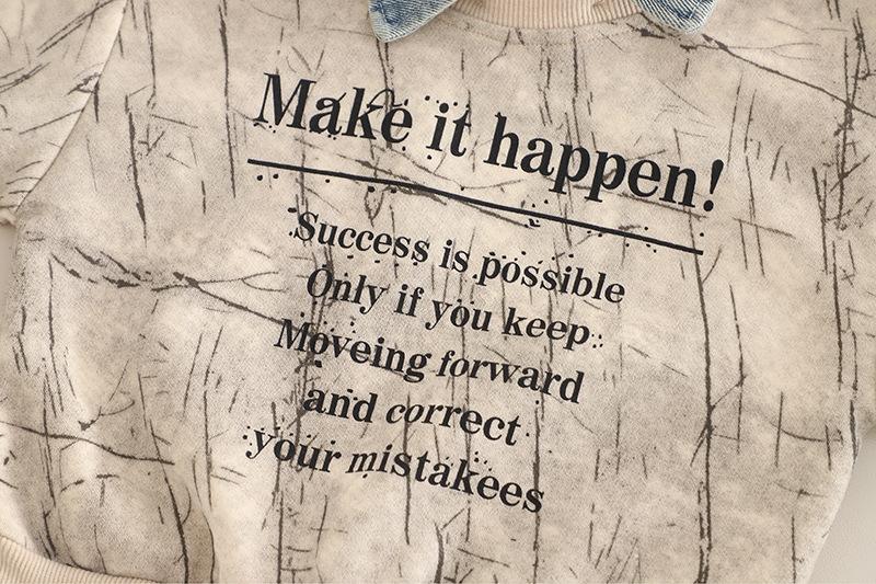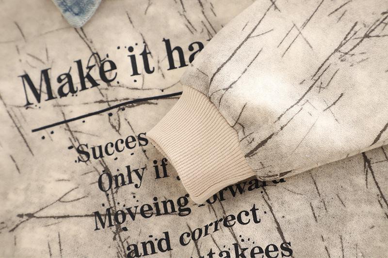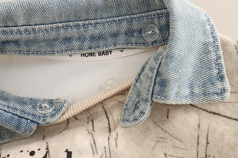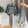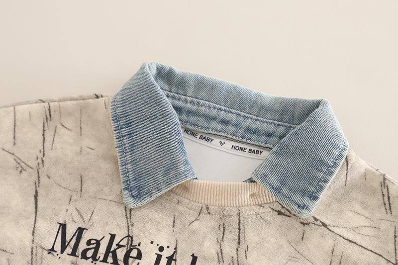 Off-white B2505119 long-sleeve detachable denim collar crew neck set, Dark Grey B2505119 Long Sleeve Detachabl...