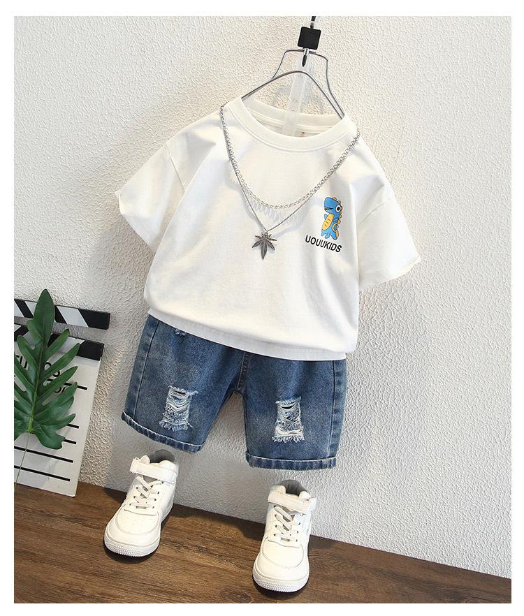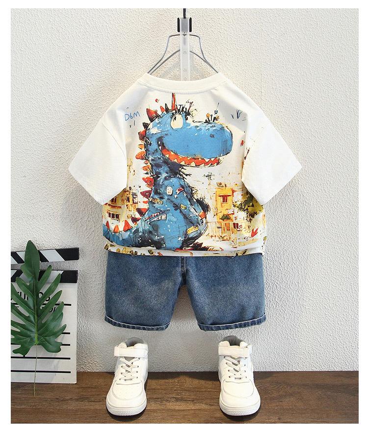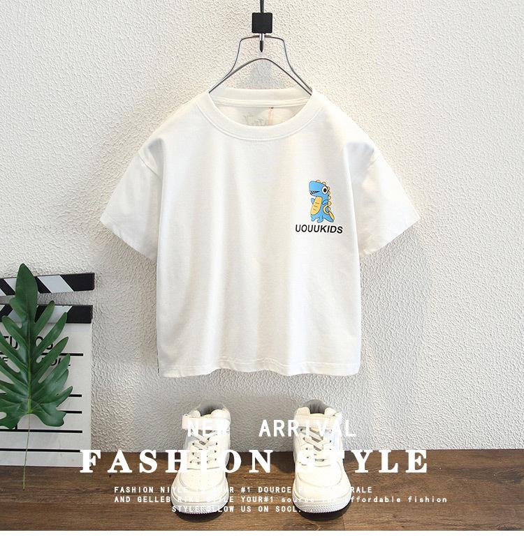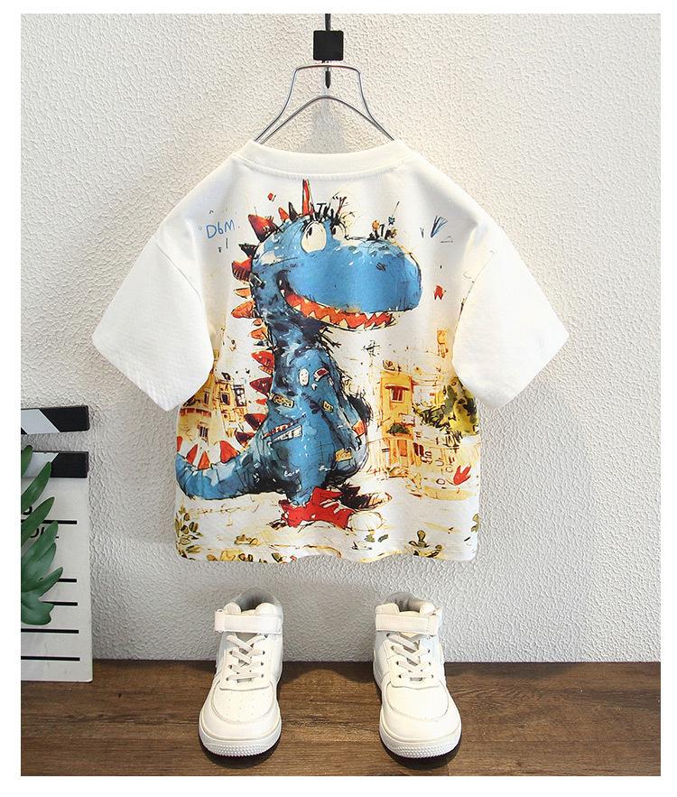 Ropa para niños Camiseta de manga corta para niños 2025 Verano Nueva Delgada Algodón para niños Dibujos animados Dinosaurio Camiseta Bebé Camiseta de media manga