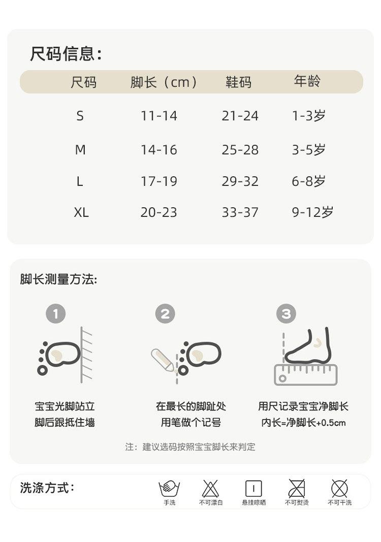 S size 1-3 years old [recommended shoe size 21-24], M size 3-5 years old [recommended shoe size 25-28], Size L...