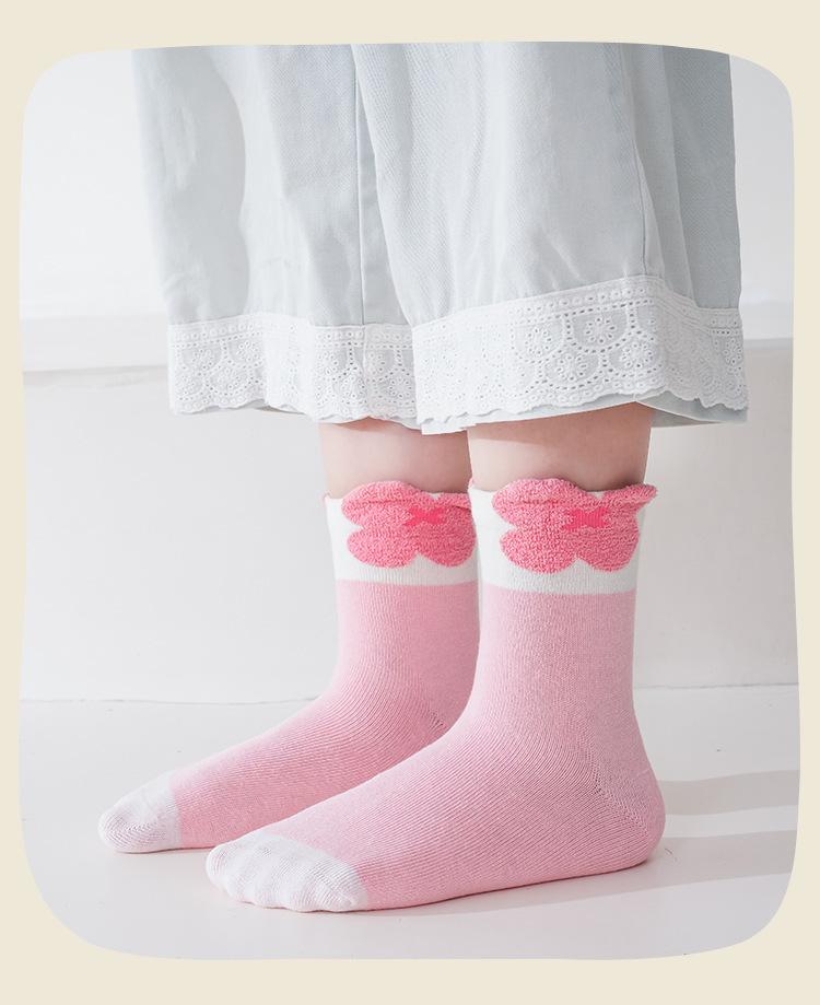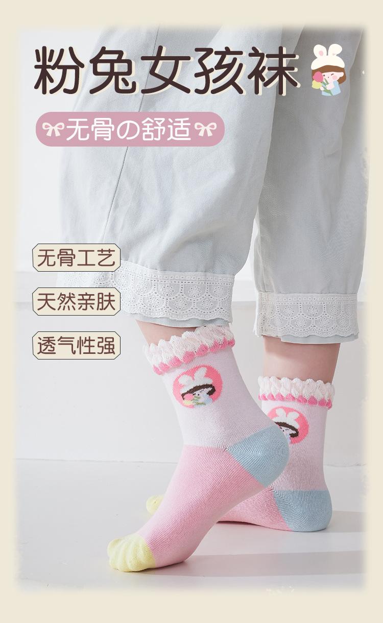 Calcetines para Niñas Calcetines de Media Caña con Lazo Grande de Conejo Rosa Algodón Peinado Encaje 1-15 Años Calcetines de Algodón Calcetines sin Costuras para Niños
