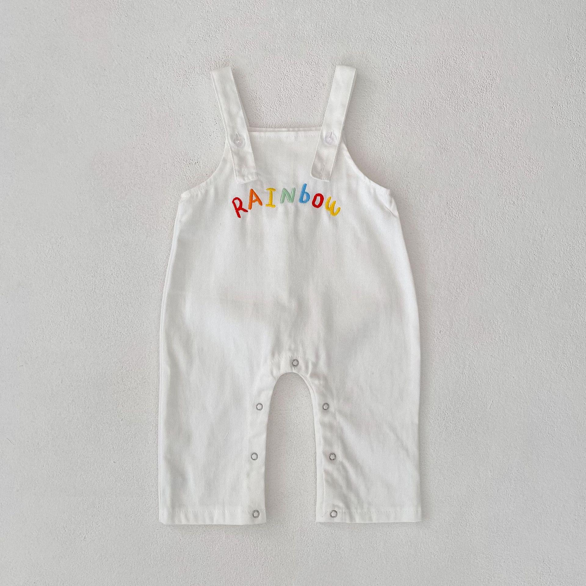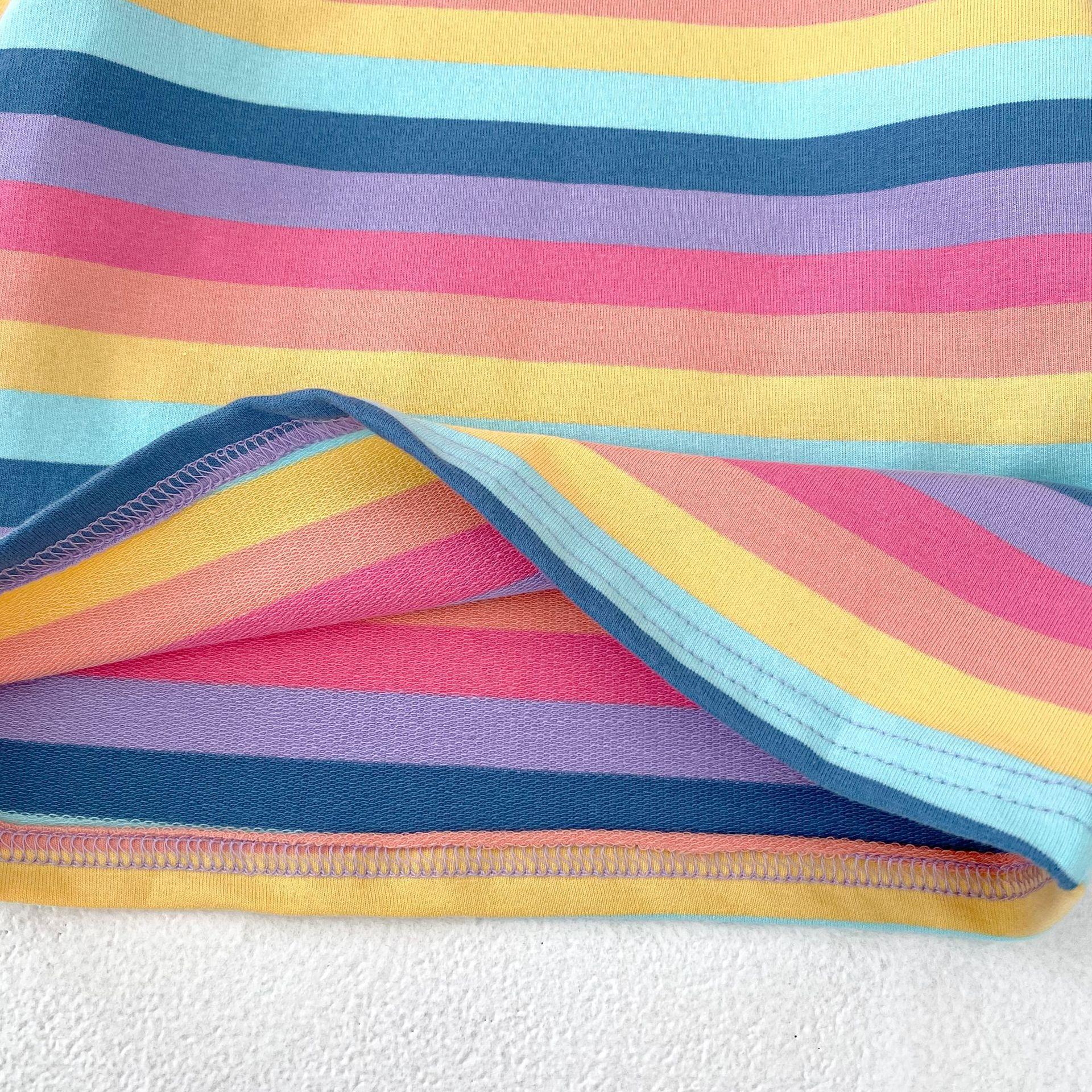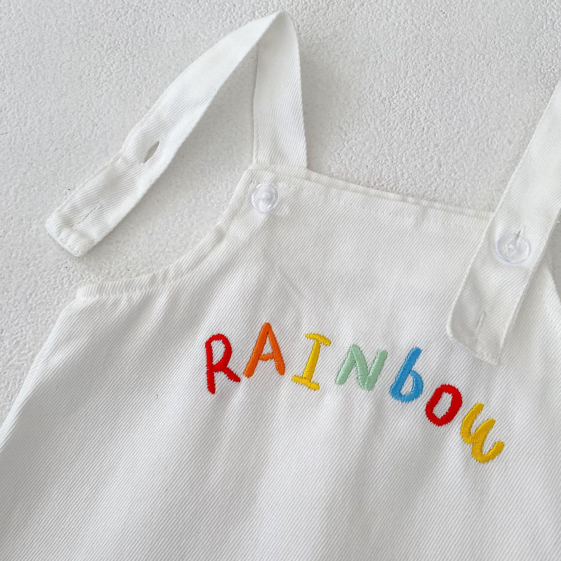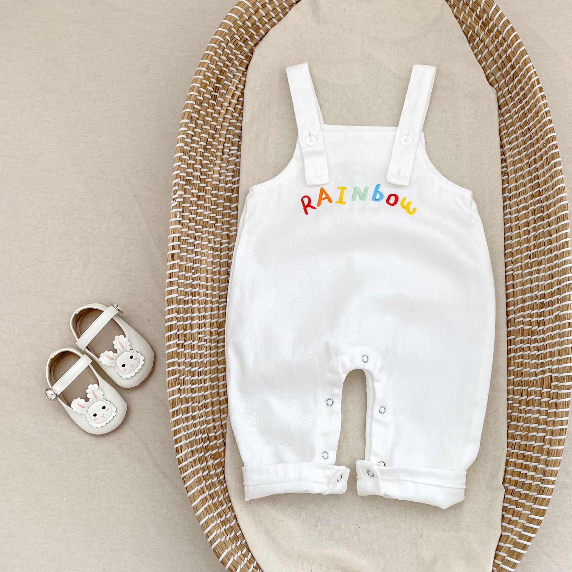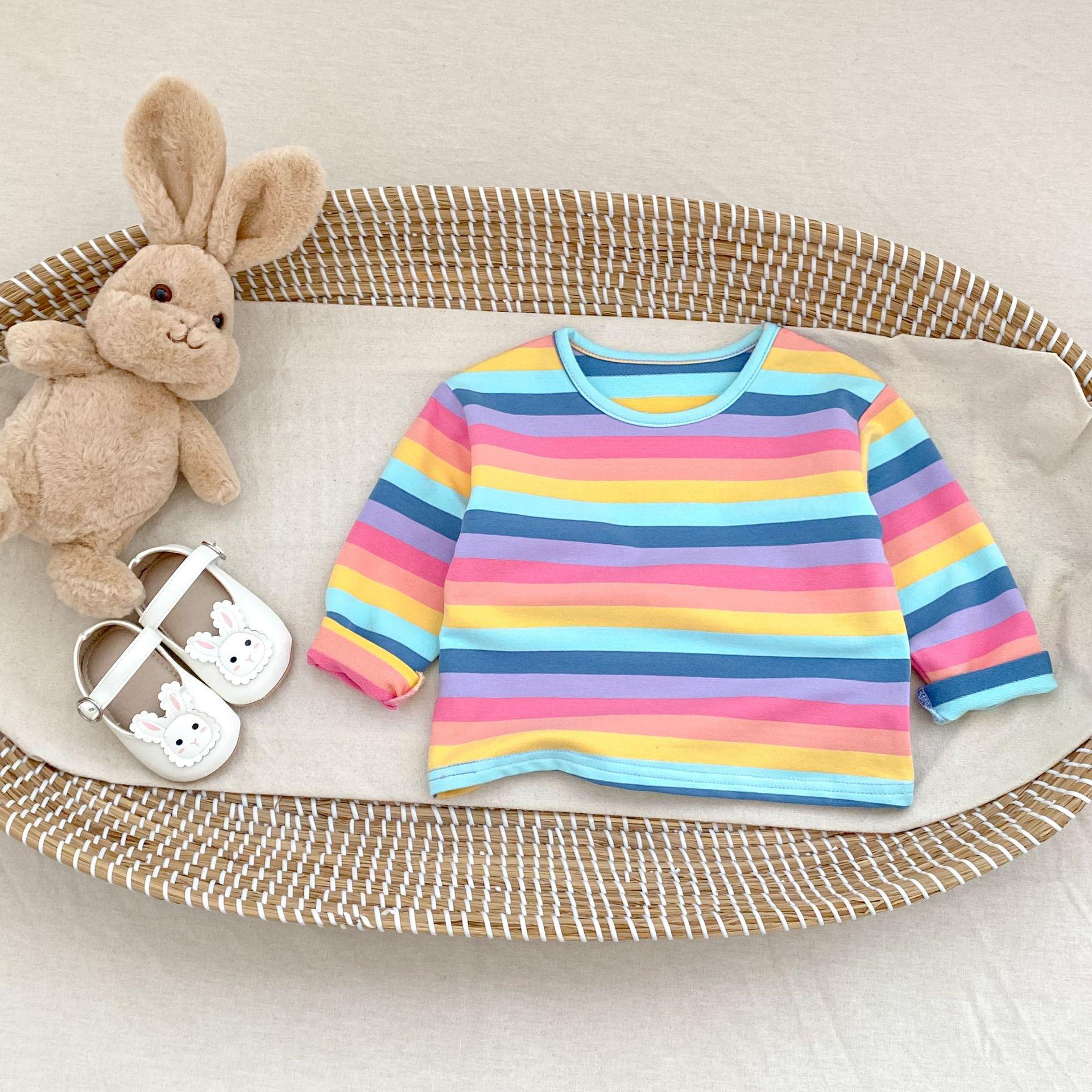 Otoño 2025 Bebé Niños y Niñas Monos Lindos de Moda Bordado de Letras Top de Manga Larga a Rayas Arcoíris Conjunto de Dos Piezas