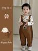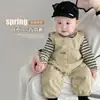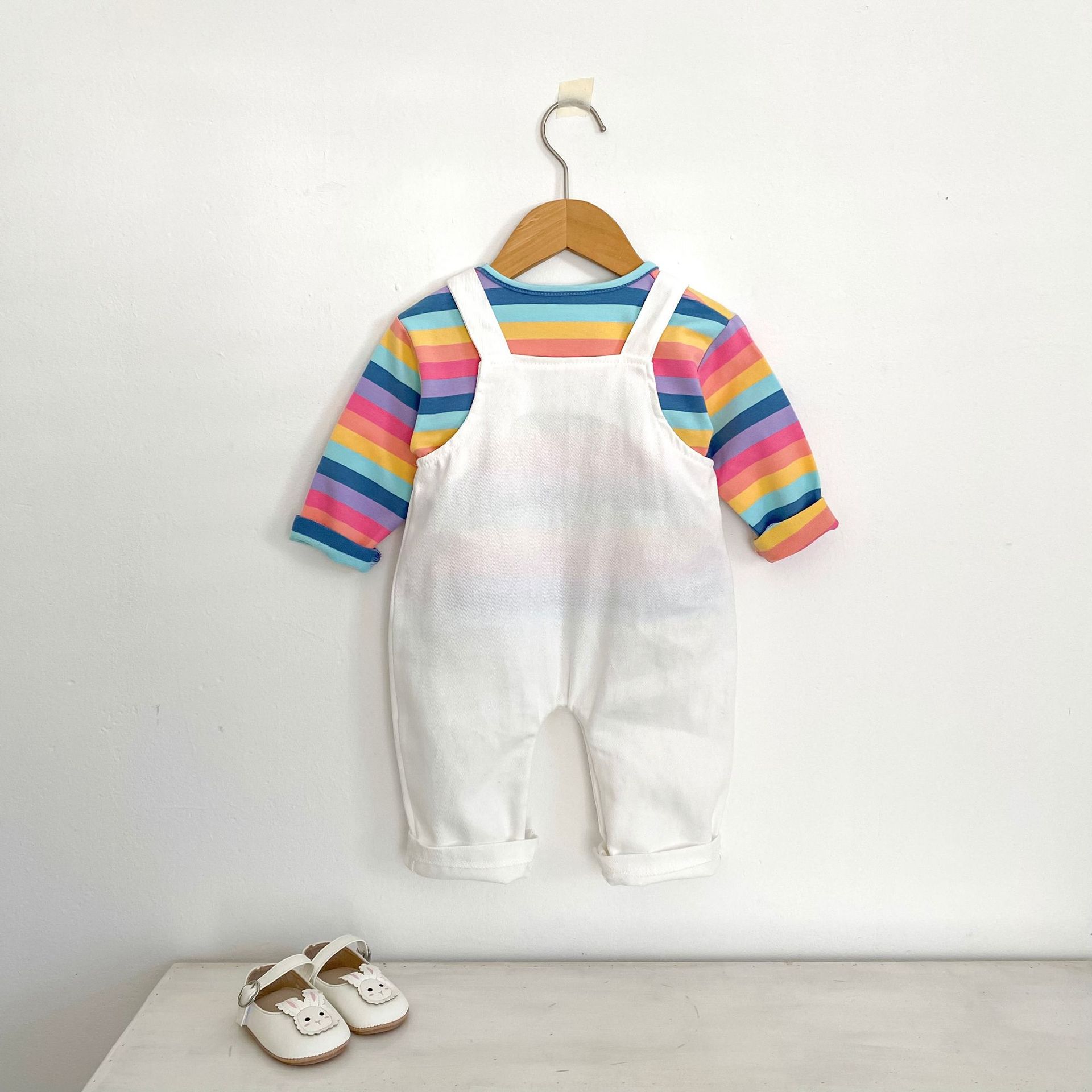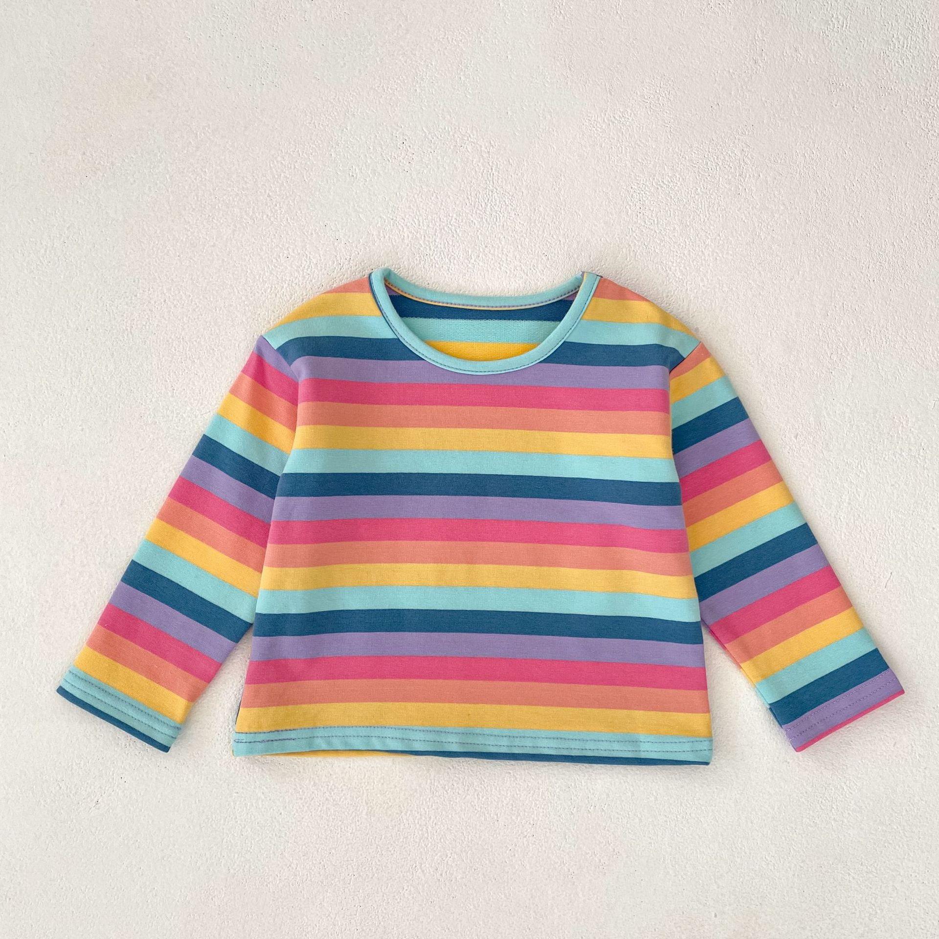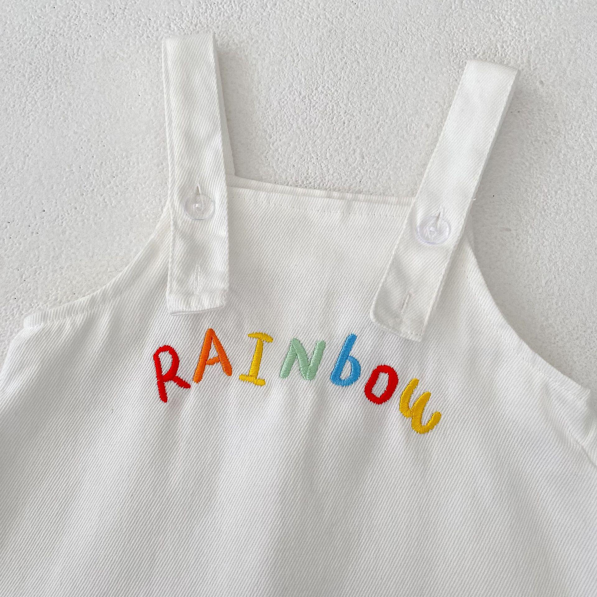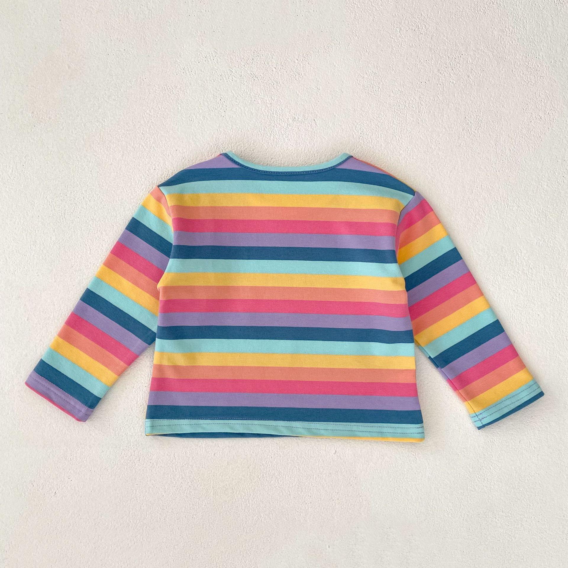 Otoño 2025 Bebé Niños y Niñas Monos Lindos de Moda Bordado de Letras Top de Manga Larga a Rayas Arcoíris Conjunto de Dos Piezas