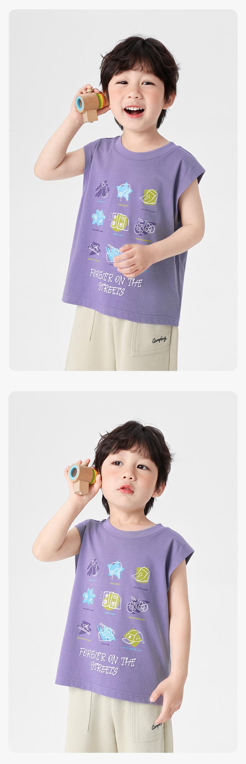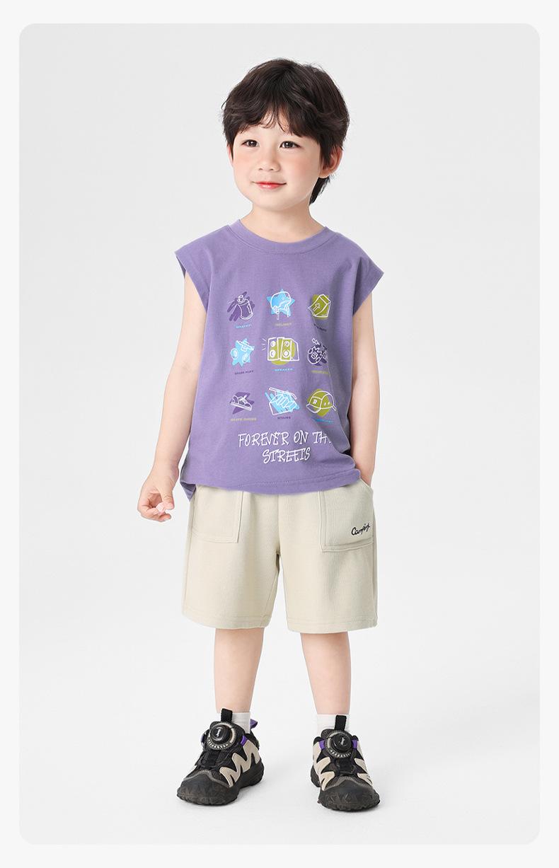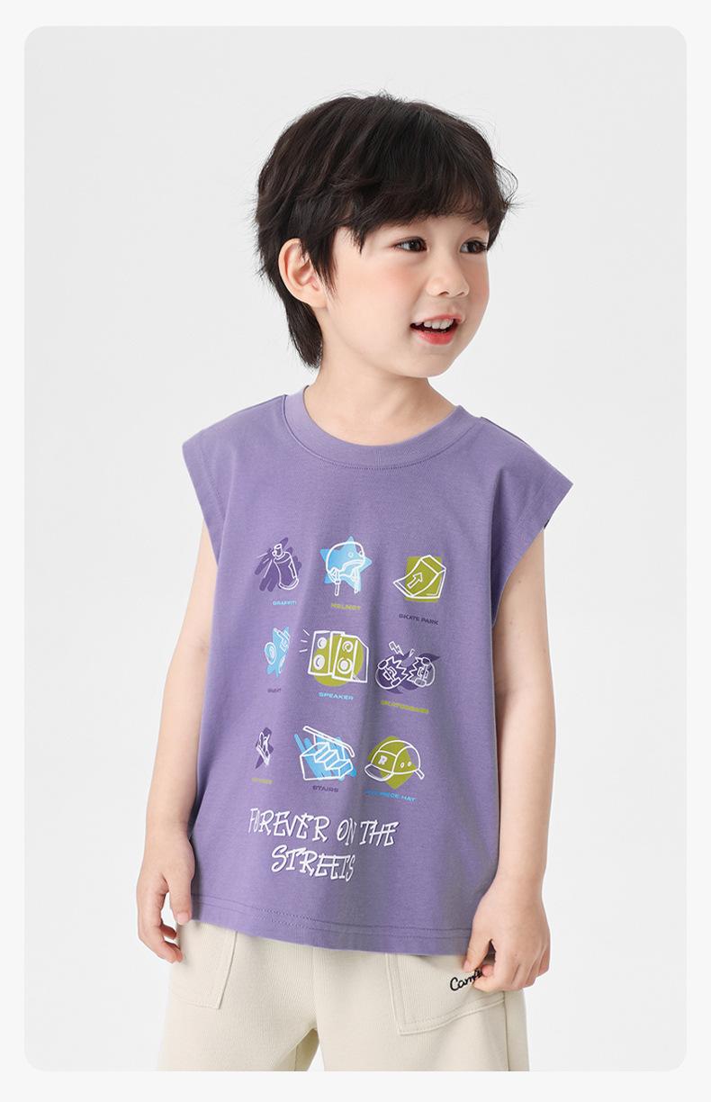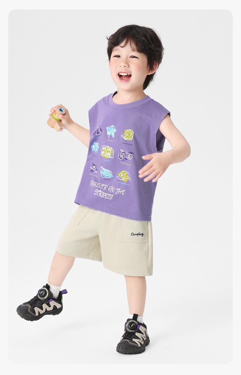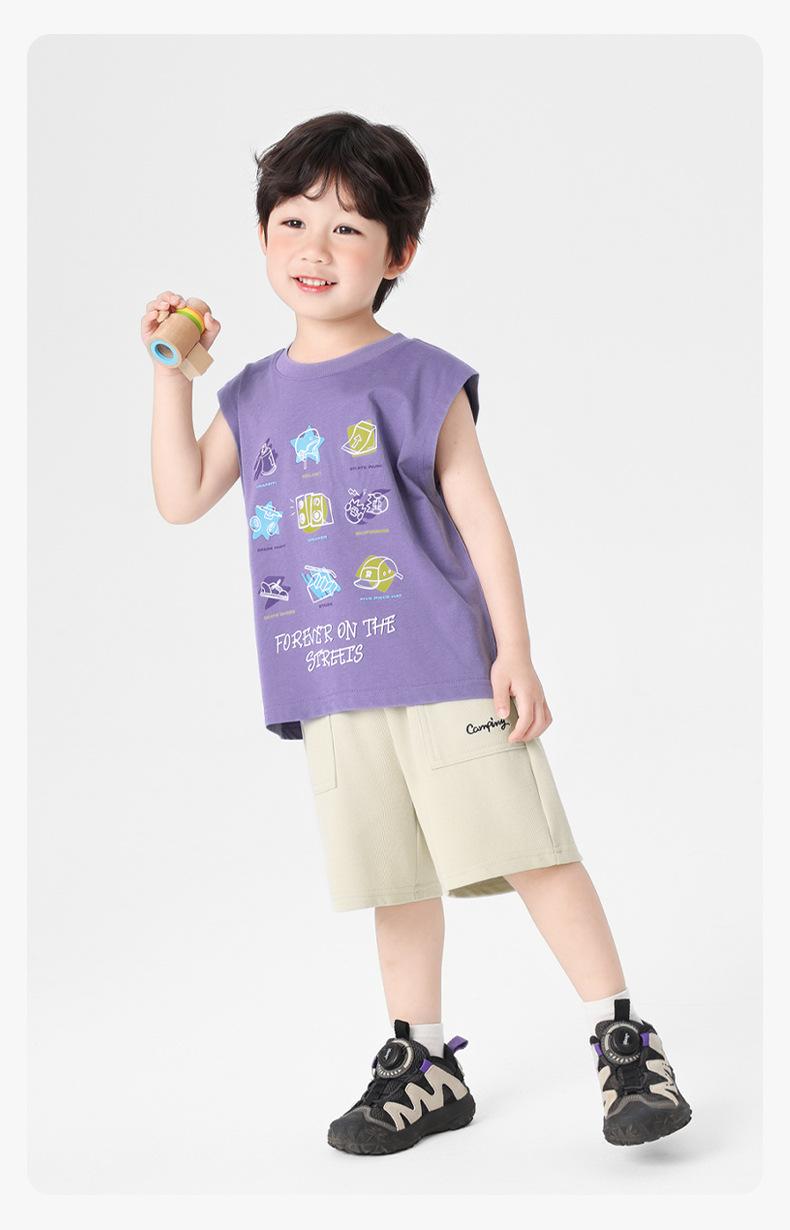 Chaleco de Verano 2025 Nuevo para Niños Bebé sin Mangas con Patrón Antibacteriano Cool Estilo Montaña Europeo Correcto