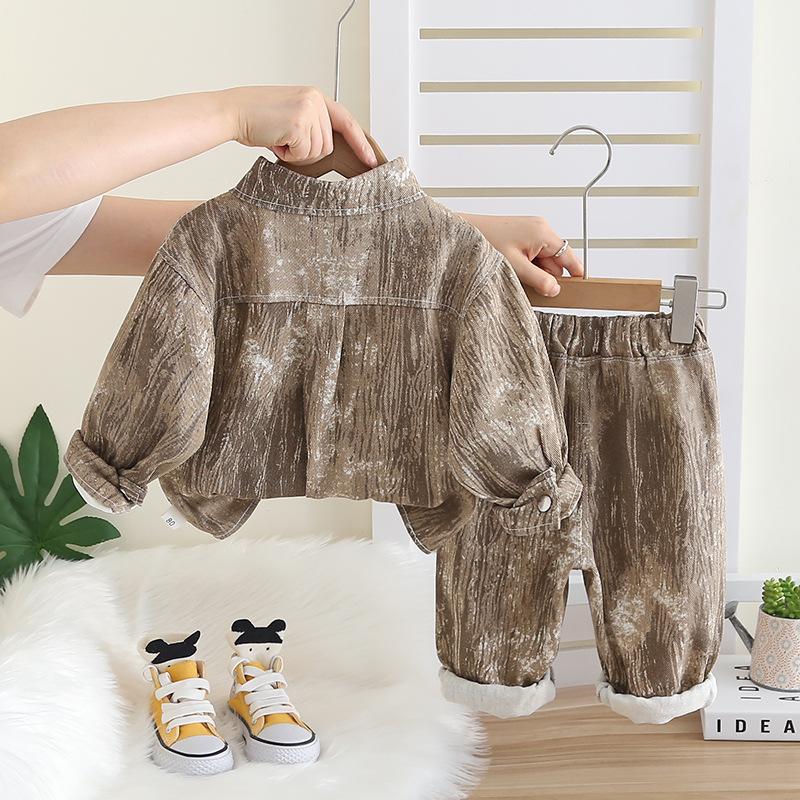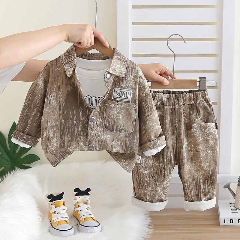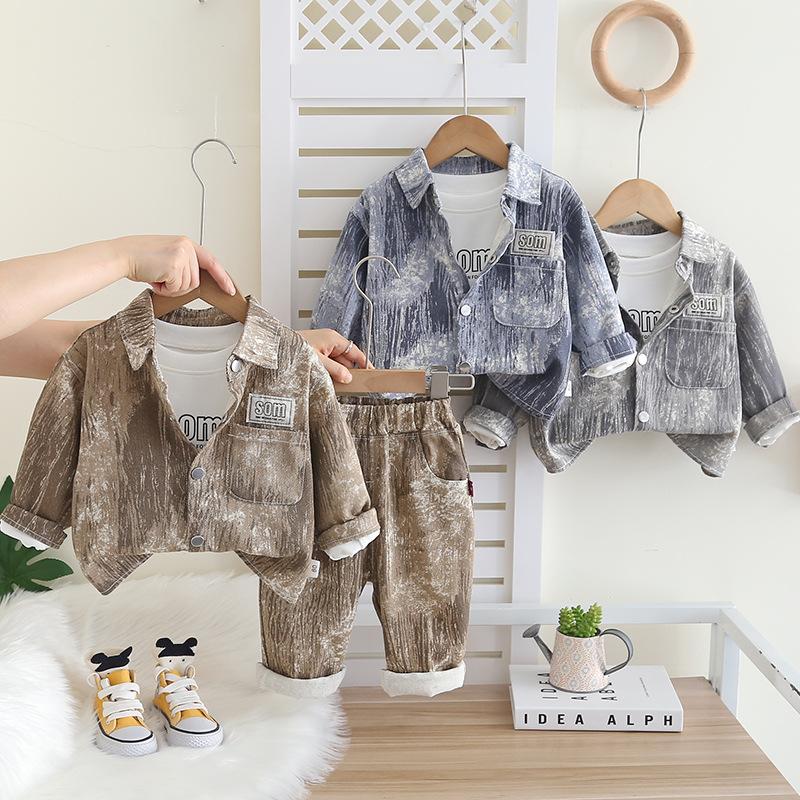 Camisas para niños 2025 Nuevo Estilo Ropa para niños Primavera y Otoño Traje de tres piezas Bebé guapo Ropa de otoño Venta al por mayor