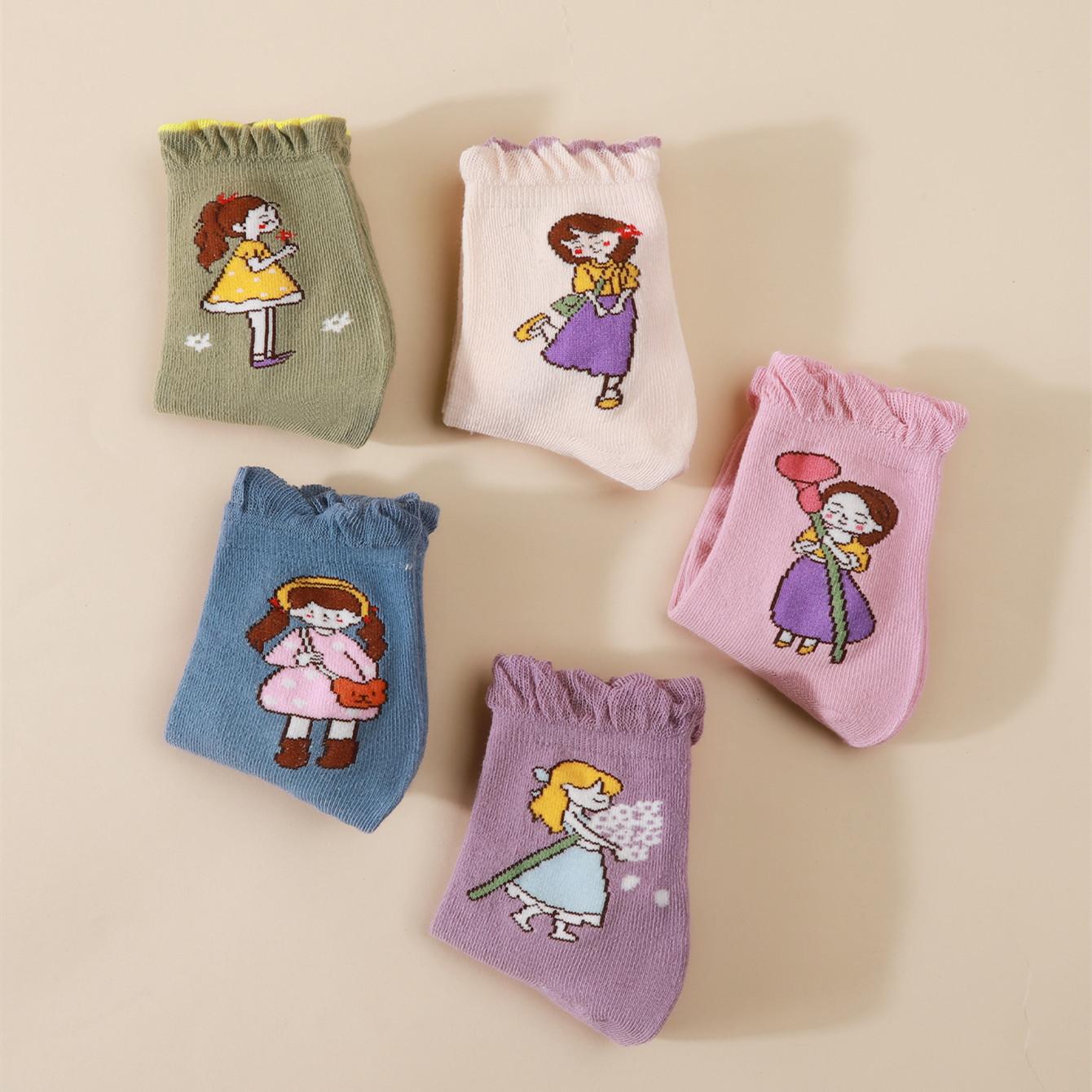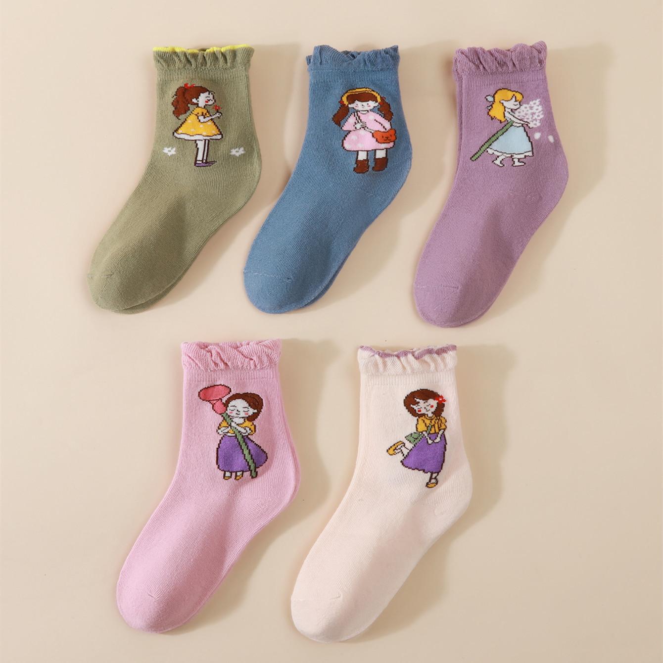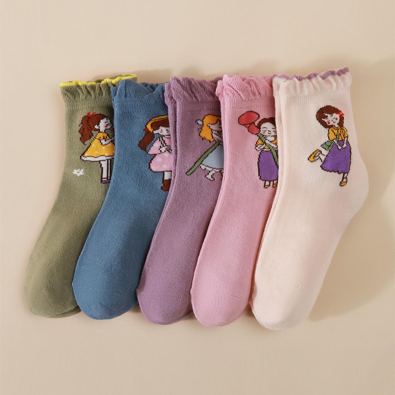 5 pares/paquete de 1 par calcetines para niños calcetines para mujer calcetines versátiles hasta la rodilla niña patrón lindo dulce absorbente de sudor casual