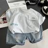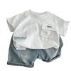 Traje de Verano para Niño Nuevo Estilo Conjunto de Dos Piezas de Manga Corta de Verano para Niños Shorts de Mezclilla Lavada Fina para Bebé