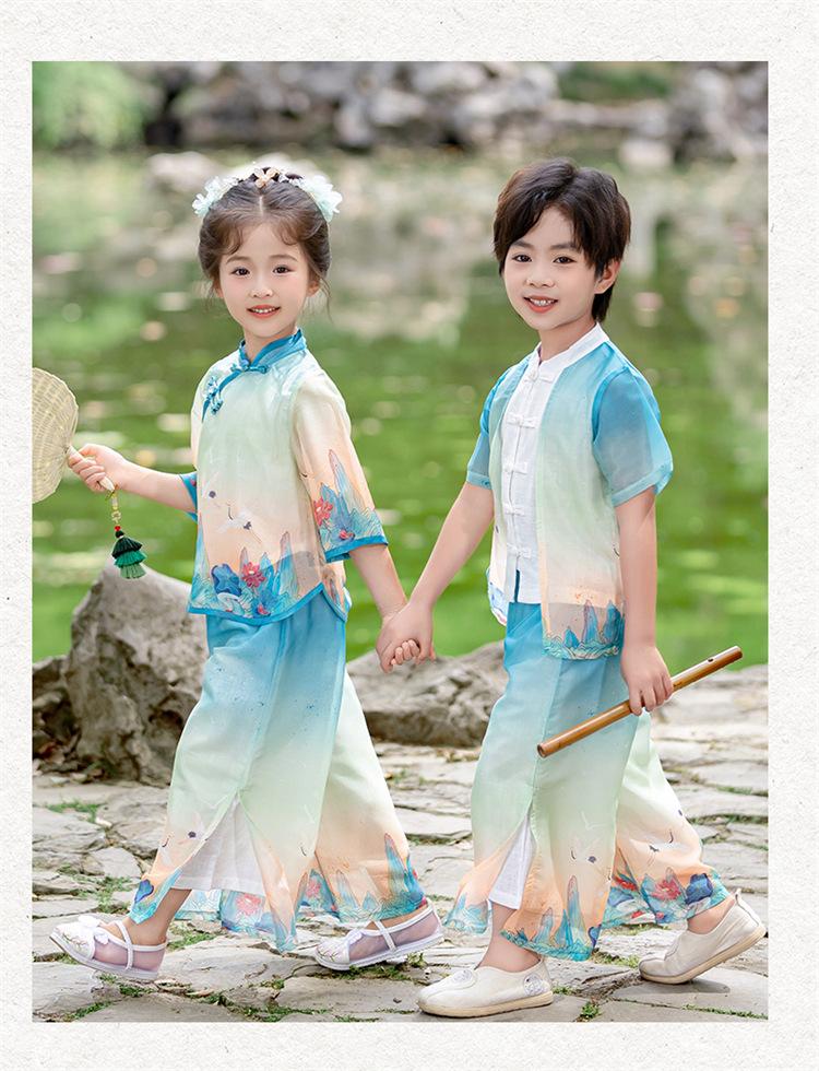 Conjunto Hanfu para niñas Traje de estilo antiguo súper hada para niños Estilo étnico Traje Tang para jardín de niños Traje de actuación de disfraz antiguo para niñas