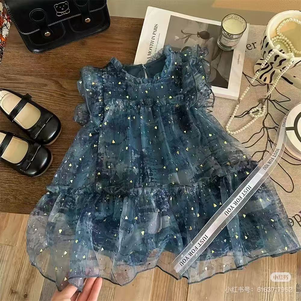 Falda para Niñas 2025 Verano Nueva Moda Vestido Infantil Manga Corta Vestido de Princesa para Bebé Falda de Malla de Verano