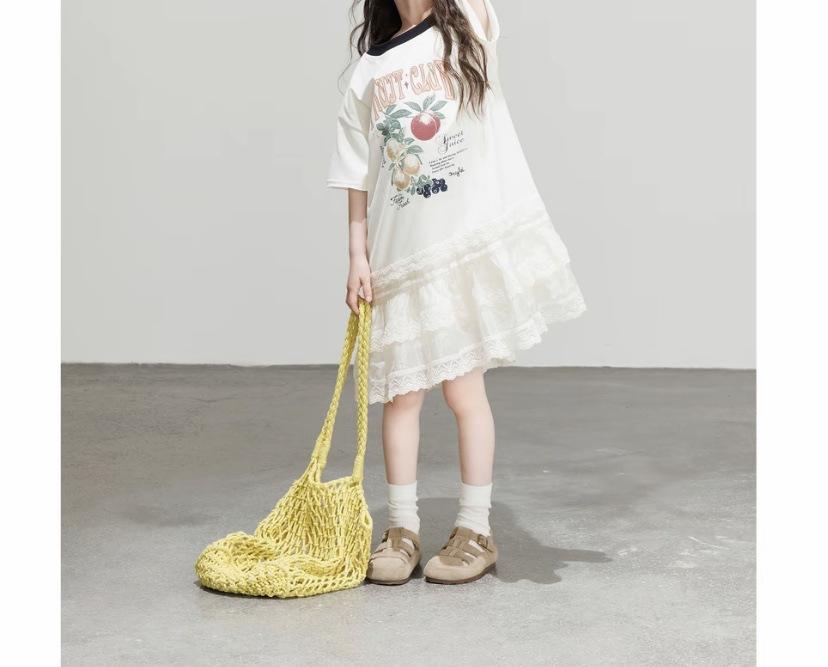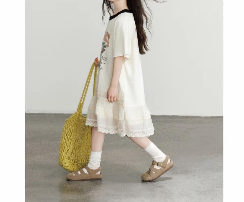 Ropa Coreana para Niñas Verano 2025 Nuevo Vestido Niña Pequeña Moda Encaje Empalmado Vestido de Princesa Moderno