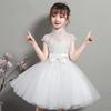 Vestido de Invierno y Verano Blanco para Niños Vestido de Princesa para Niña con Flores Gasa Esponjosa Anfitrión Pasarela Actuación de Piano