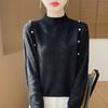 Otoño e Invierno 2025 Nueva Ropa de Punto de Cuello Alto Color Puro Ajustado Tejido de Punto Top de Manga Larga Camiseta Básica Moda Femenina Tendencia Ins