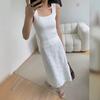 Traje de fondo de verano 2025 con cuello cuadrado y top sin mangas de espalda hermosa para mujer, camisola tejida de seda de hielo con prenda exterior corta