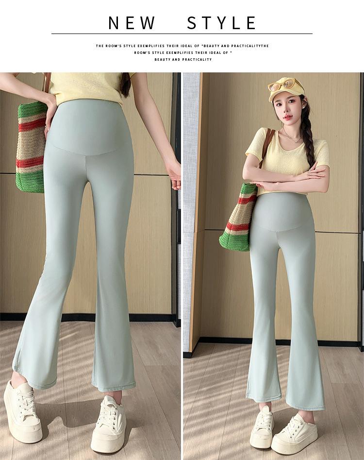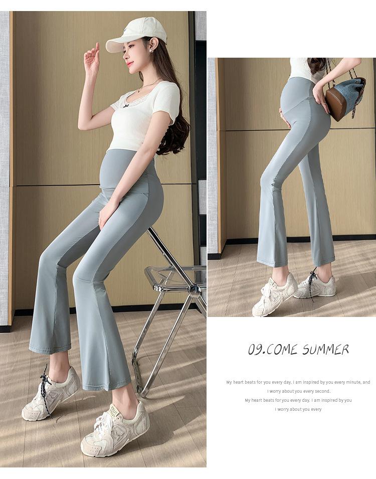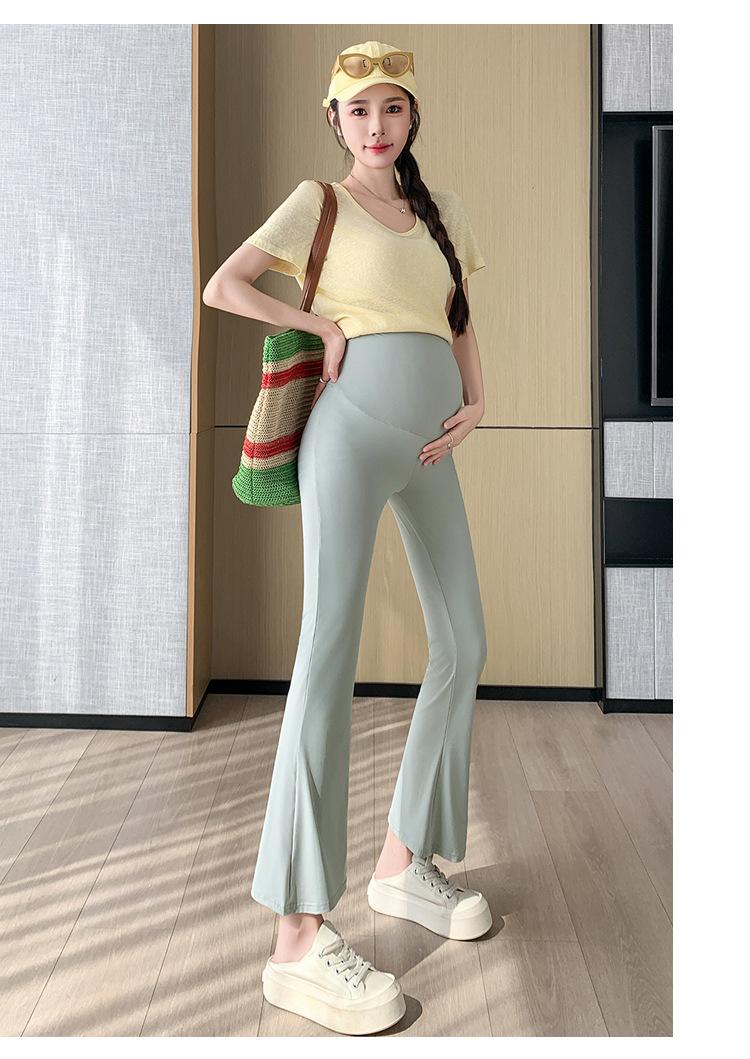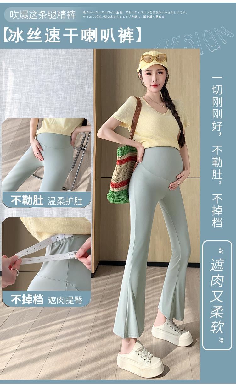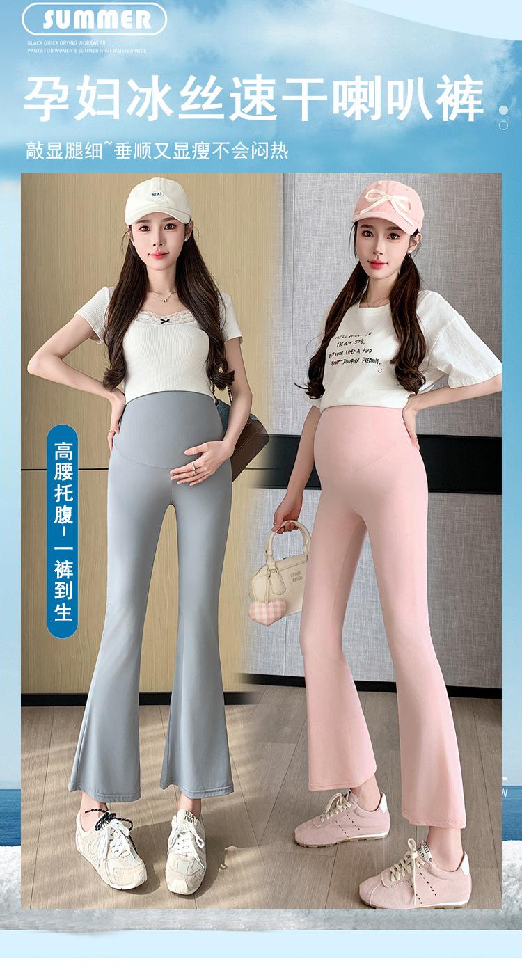 Pantalones de Maternidad 2025 Primavera y Verano Nuevo Estilo Maternidad Pantalones Delgados de Tiburón Alta Elasticidad Secado Rápido Seda de Hielo Pantalones Acampanados Soporte para el Vientre Pantalones de Yoga