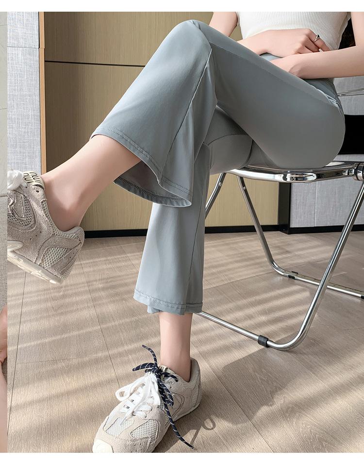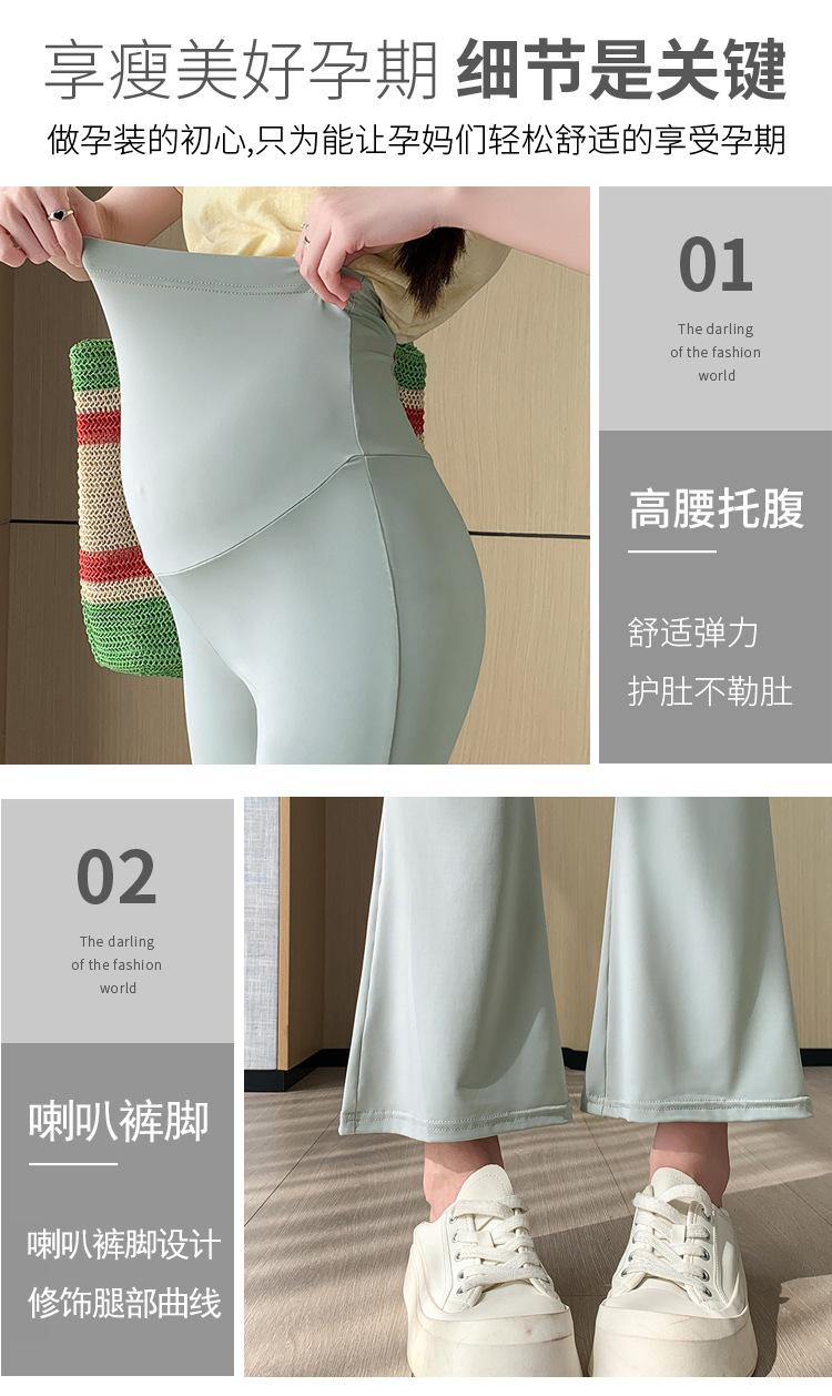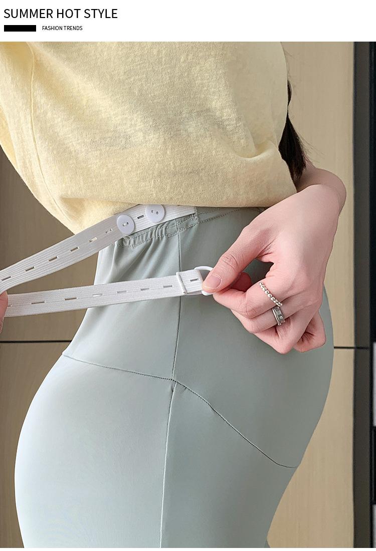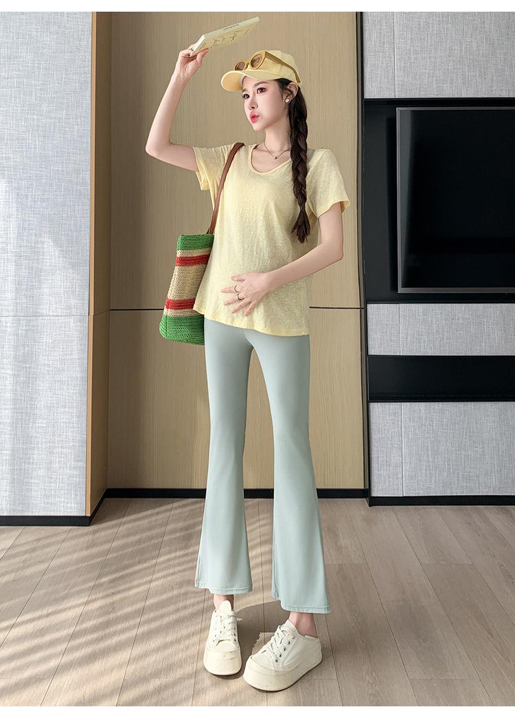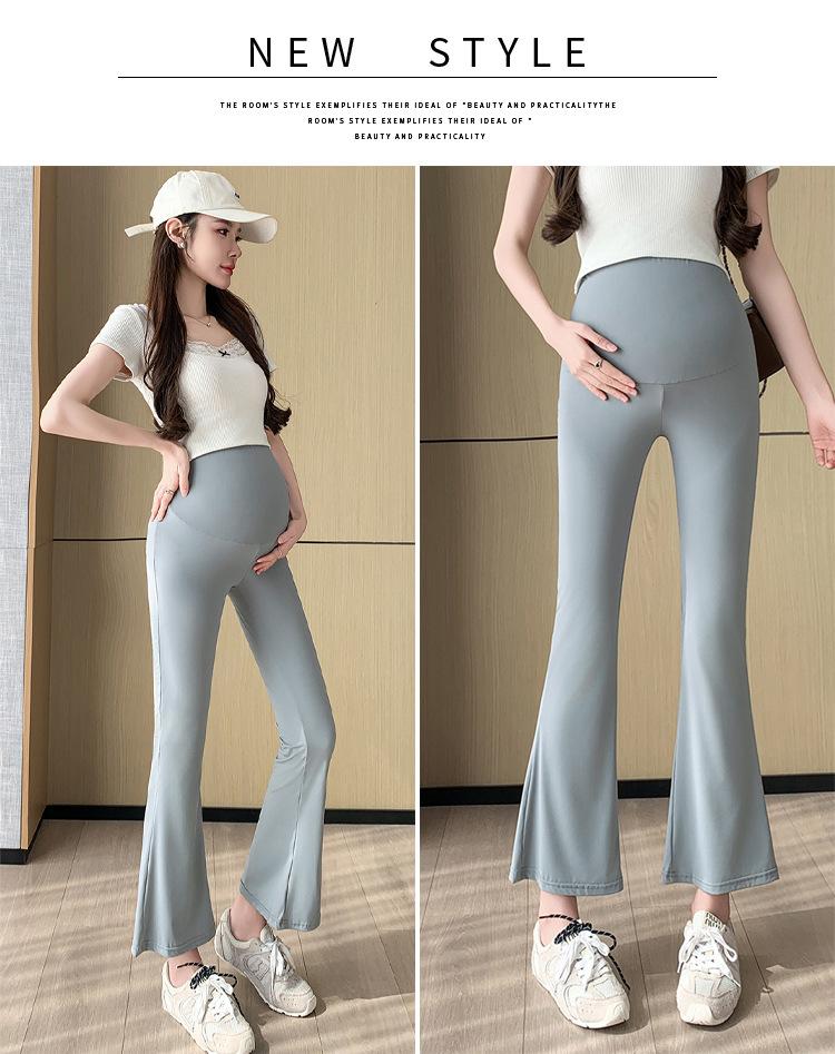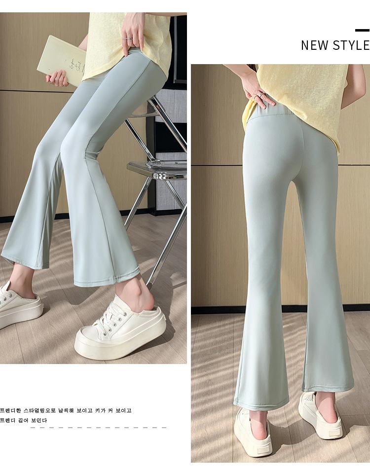 Pantalones de Maternidad 2025 Primavera y Verano Nuevo Estilo Maternidad Pantalones Delgados de Tiburón Alta Elasticidad Secado Rápido Seda de Hielo Pantalones Acampanados Soporte para el Vientre Pantalones de Yoga