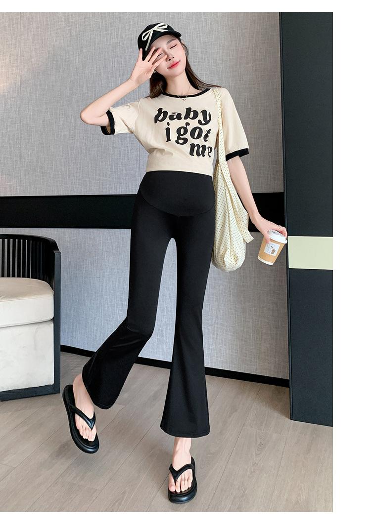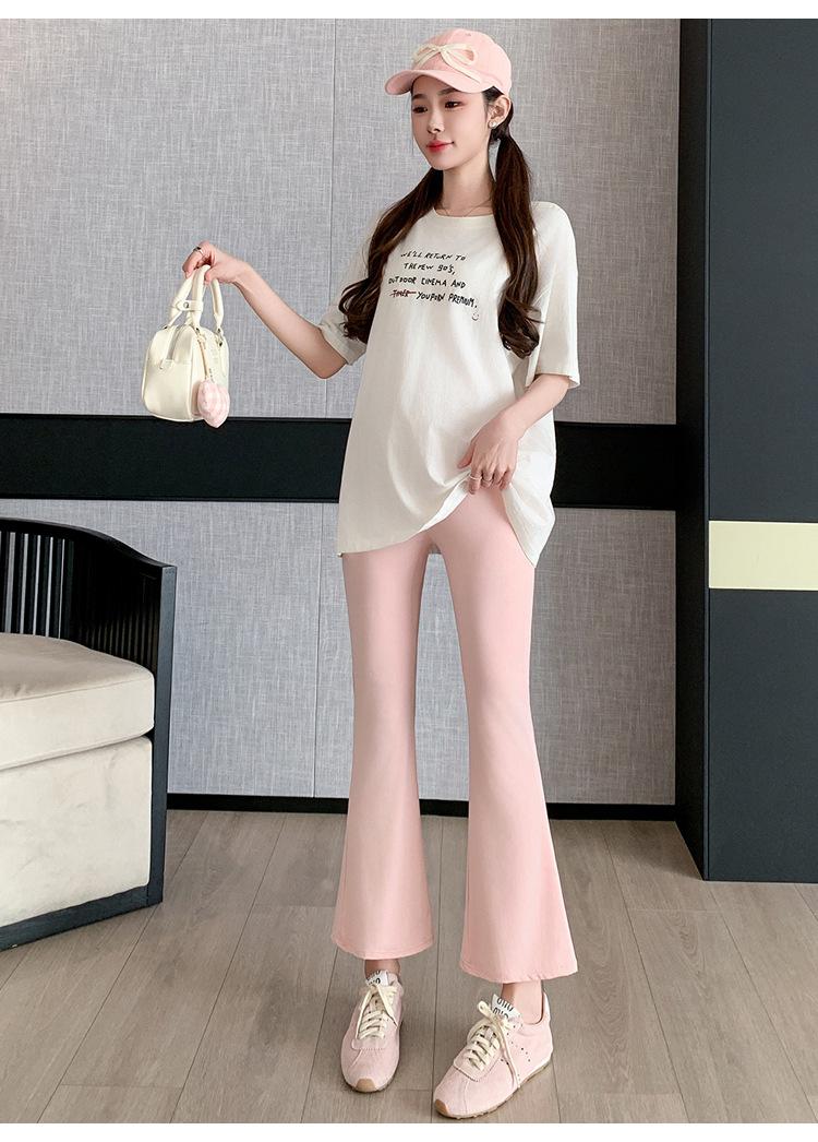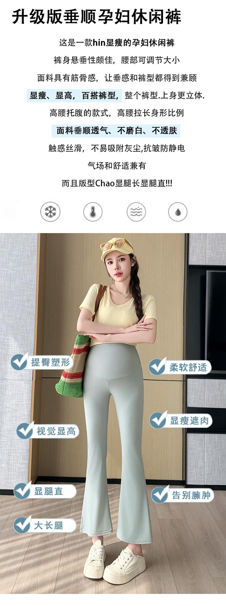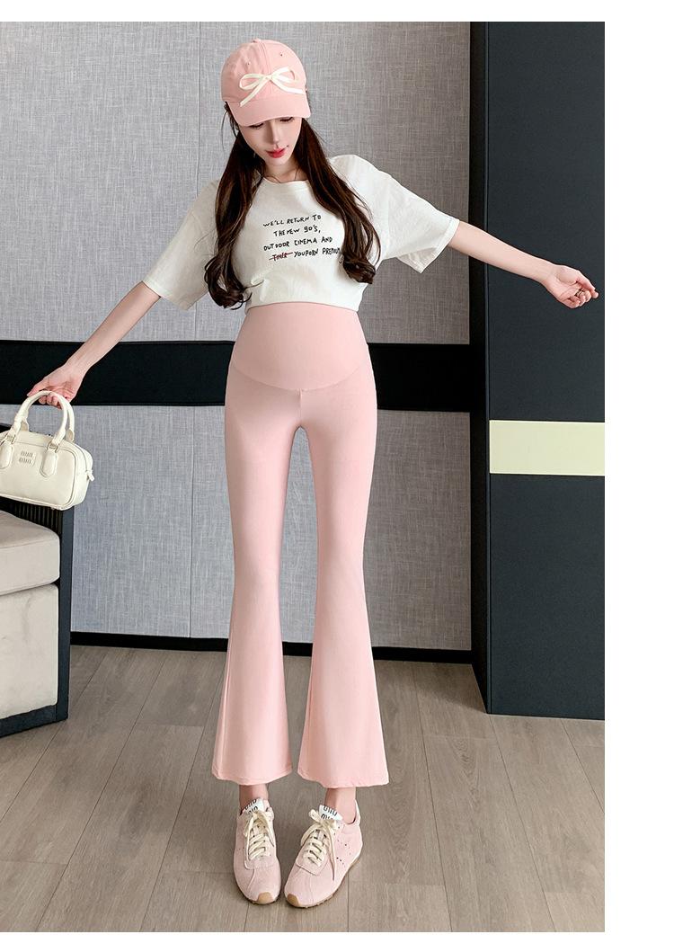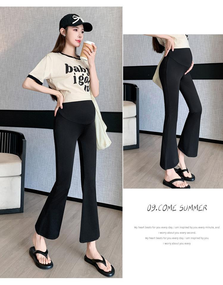 Pantalones de Maternidad 2025 Primavera y Verano Nuevo Estilo Maternidad Pantalones Delgados de Tiburón Alta Elasticidad Secado Rápido Seda de Hielo Pantalones Acampanados Soporte para el Vientre Pantalones de Yoga