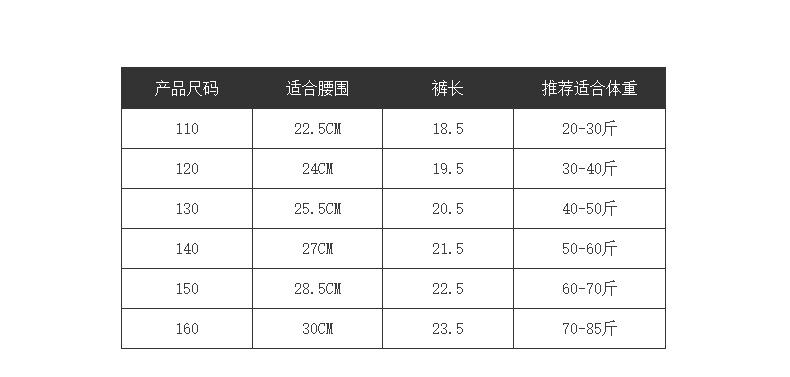 110cm, 120cm, 130cm, 140cm, 150cm, 160cm