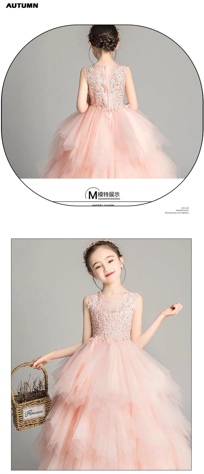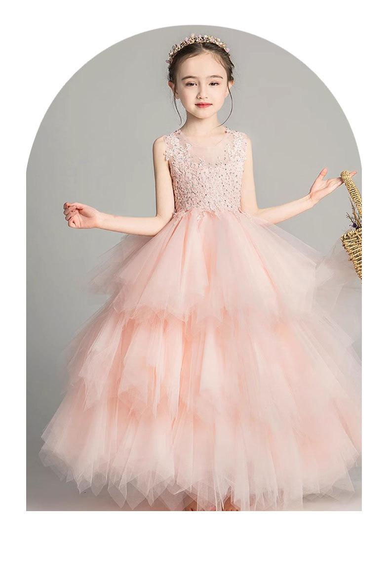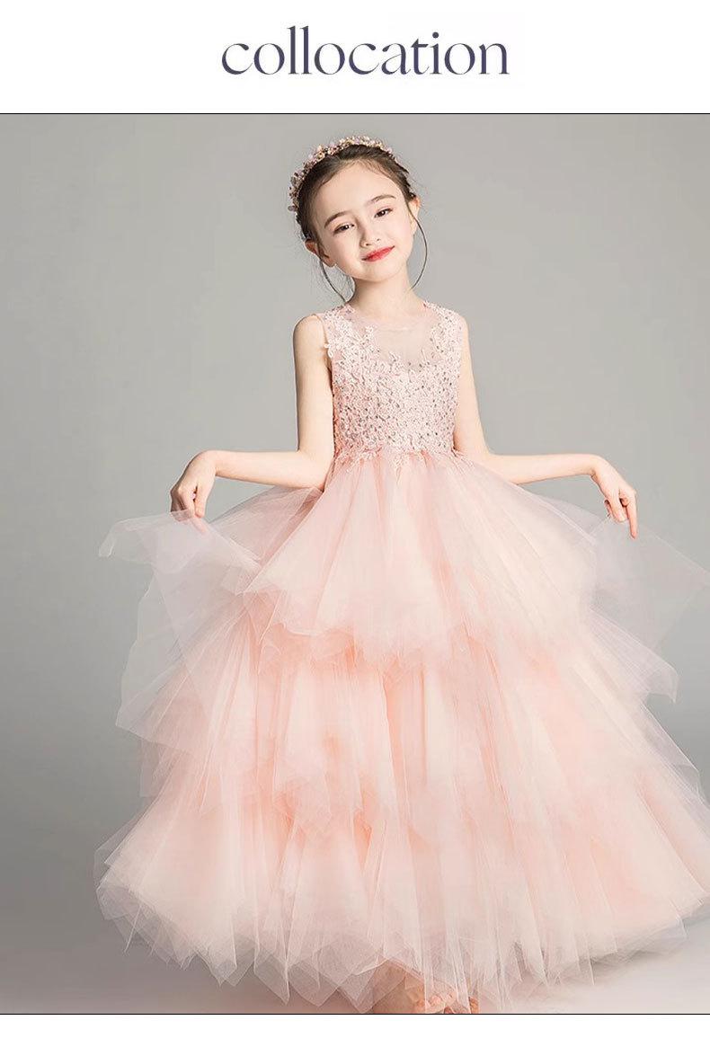 Vestido de Princesa de Gasa Abullonada Niña Dama de Honor Pasarela Vestido de Boda Vestido de Noche de Cumpleaños para Niños Vestido Pequeño de Anfitriona para Actuación de Piano