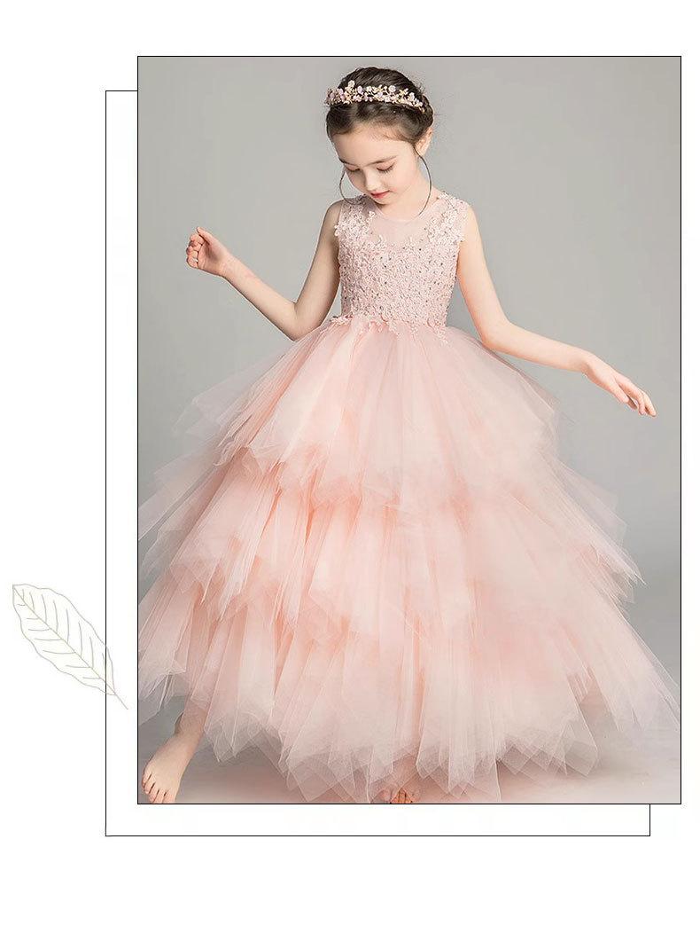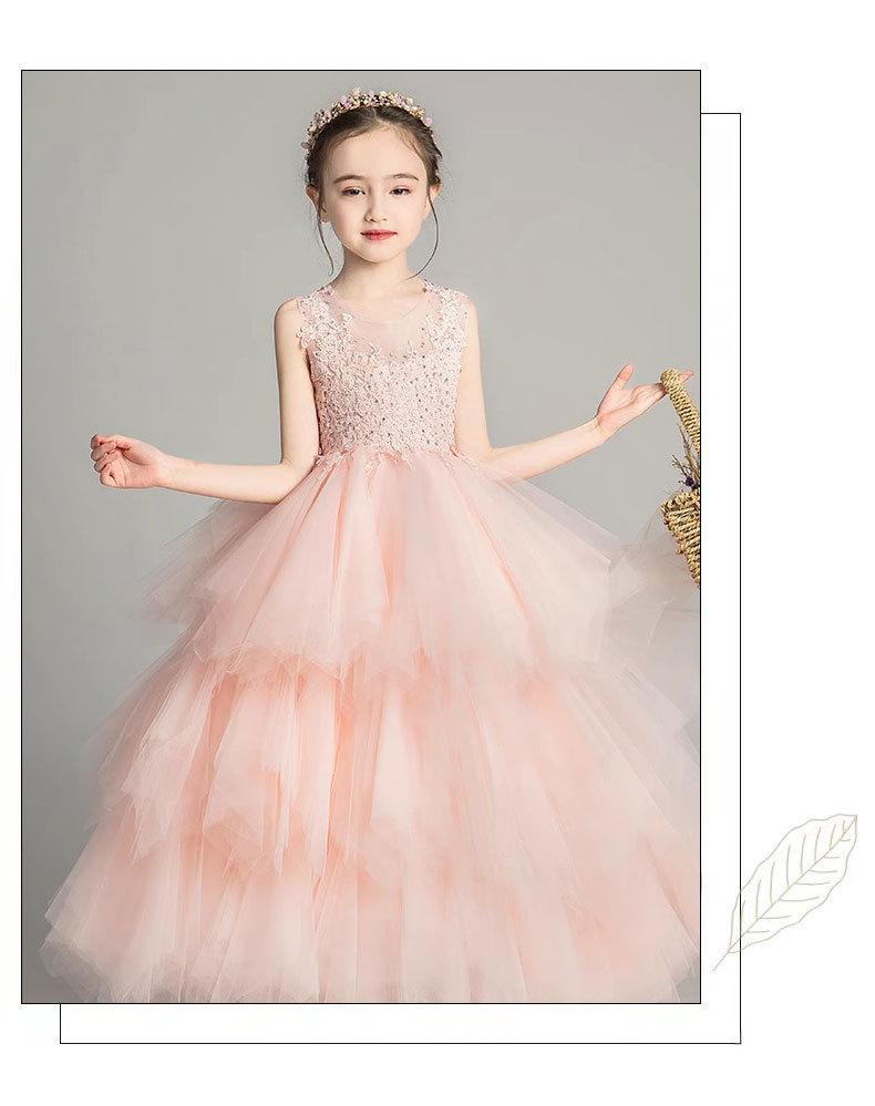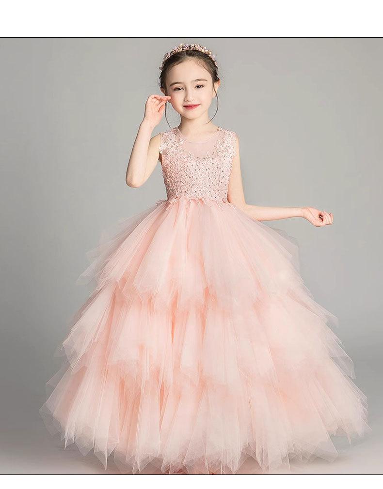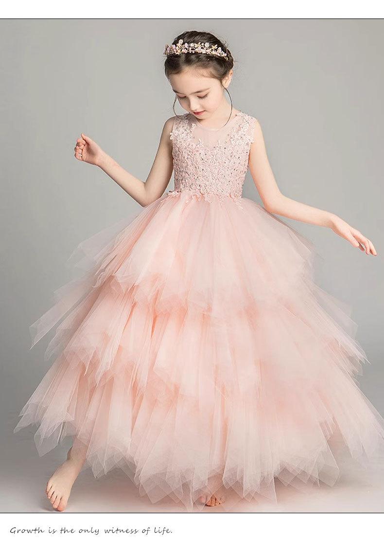 Vestido de Princesa de Gasa Abullonada Niña Dama de Honor Pasarela Vestido de Boda Vestido de Noche de Cumpleaños para Niños Vestido Pequeño de Anfitriona para Actuación de Piano