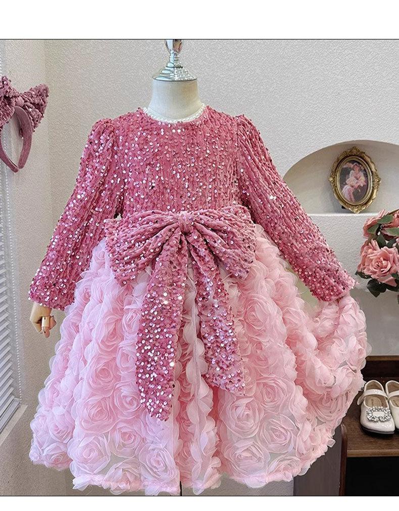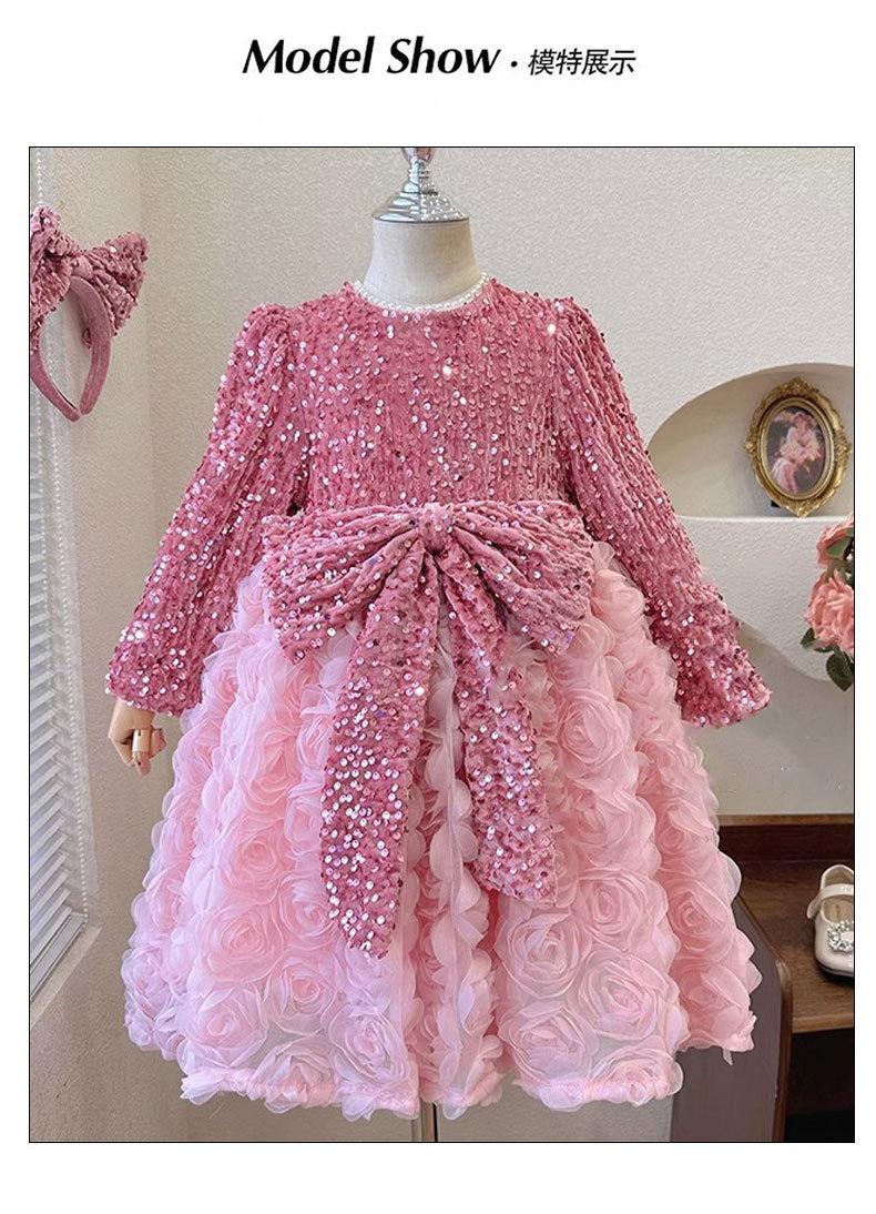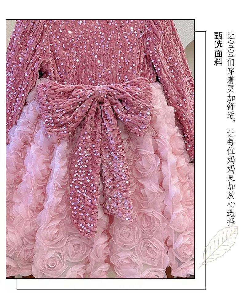 2025 Nuevo Vestido de Princesa Elegante para Niñas Otoño e Invierno Vestido de Cumpleaños para Niñita Vestido de Terciopelo Estilo Infantil