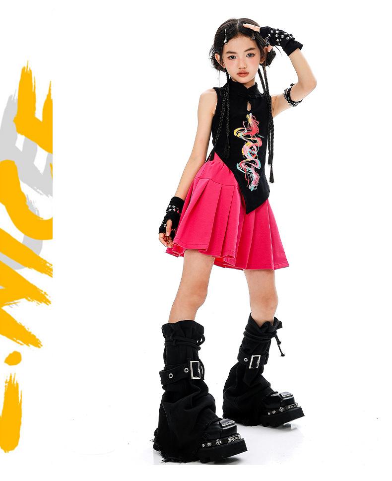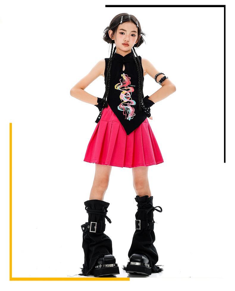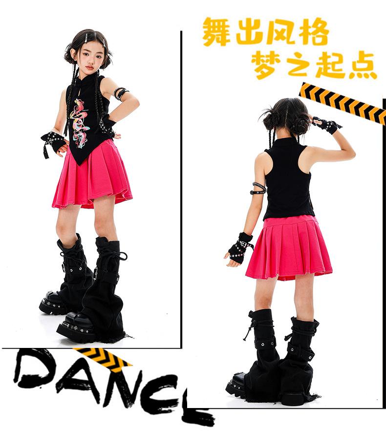 Ropa de Danza Jazz para Niños, Chaleco de Moda para Niñas, Traje de Falda Plisada, Ropa de Moda para Actuación Hip-Hop de Verano para Niños