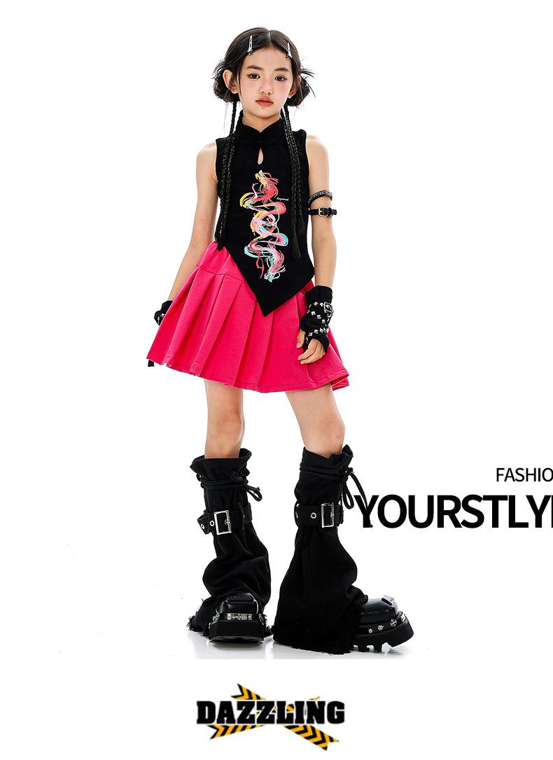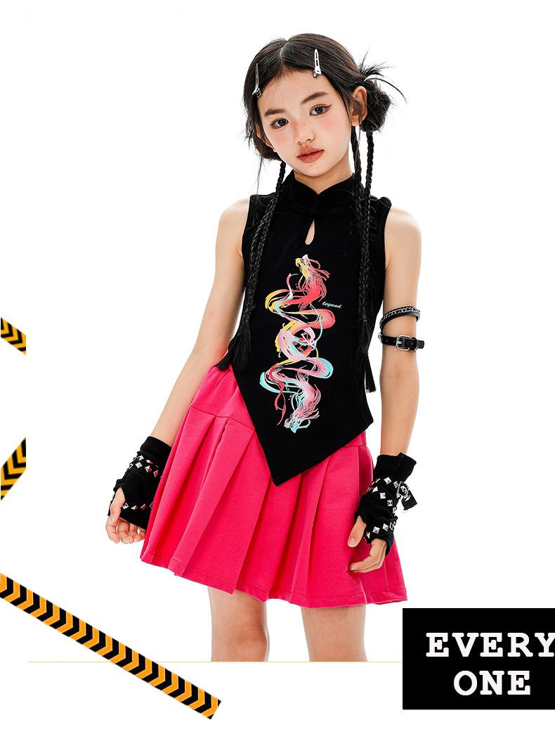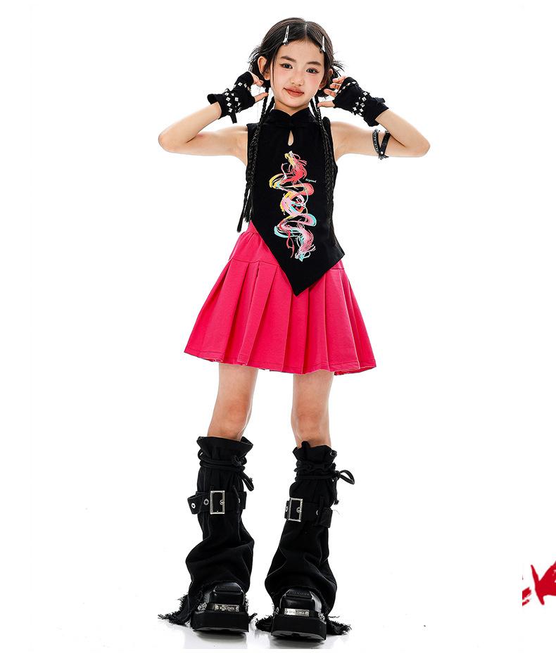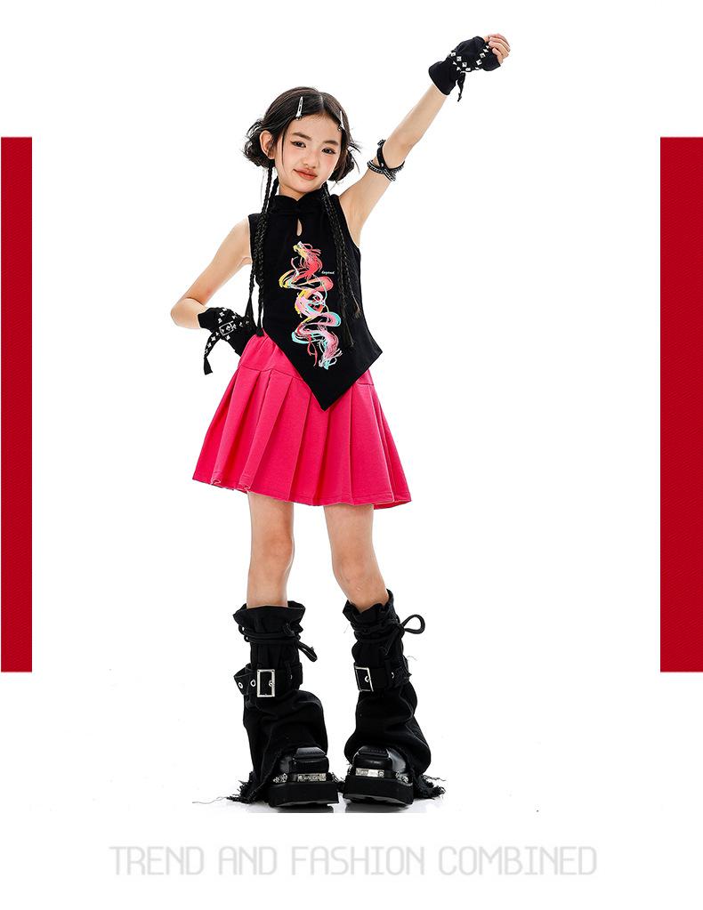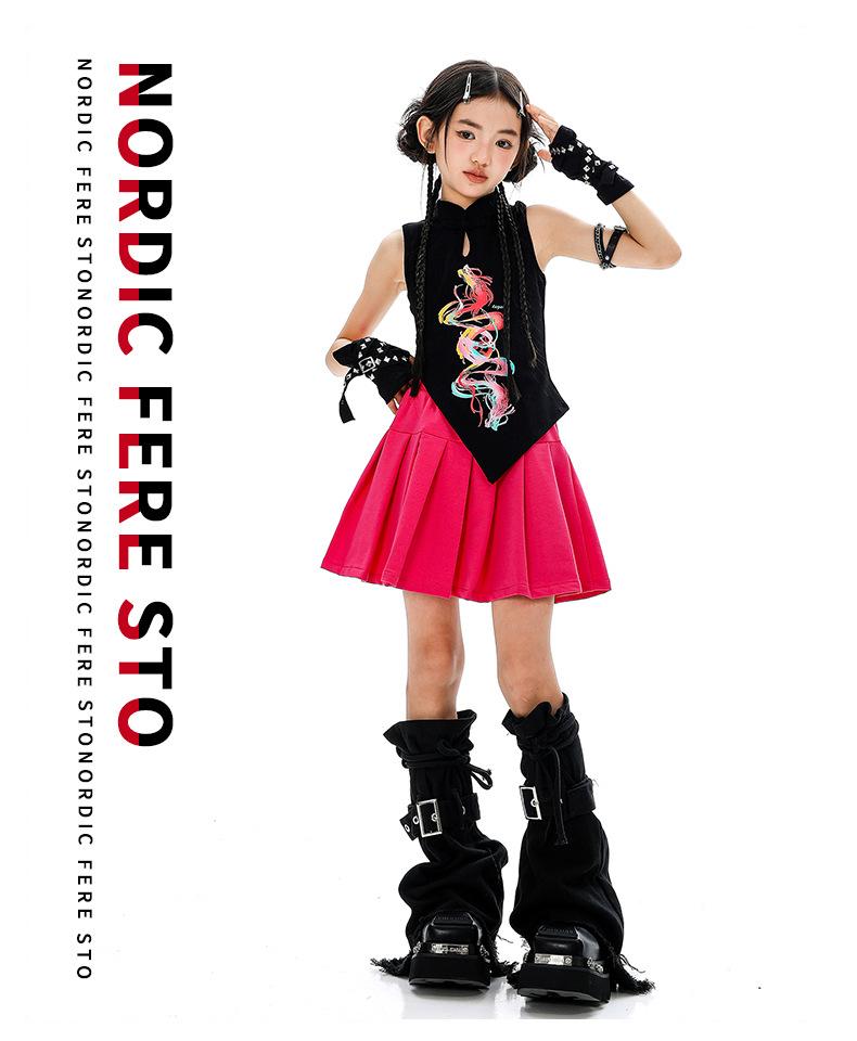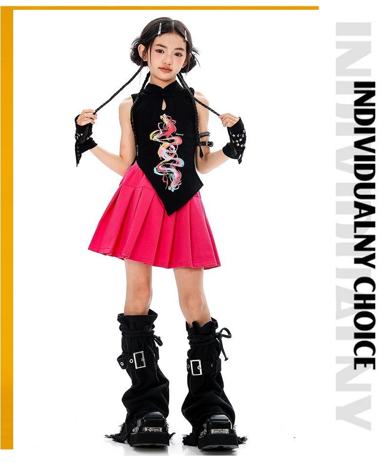 A63 black dragon vest + 401 rose red pleated skirt, A63 black dragon vest, 401 rose red pleated skirt, Rivet g...