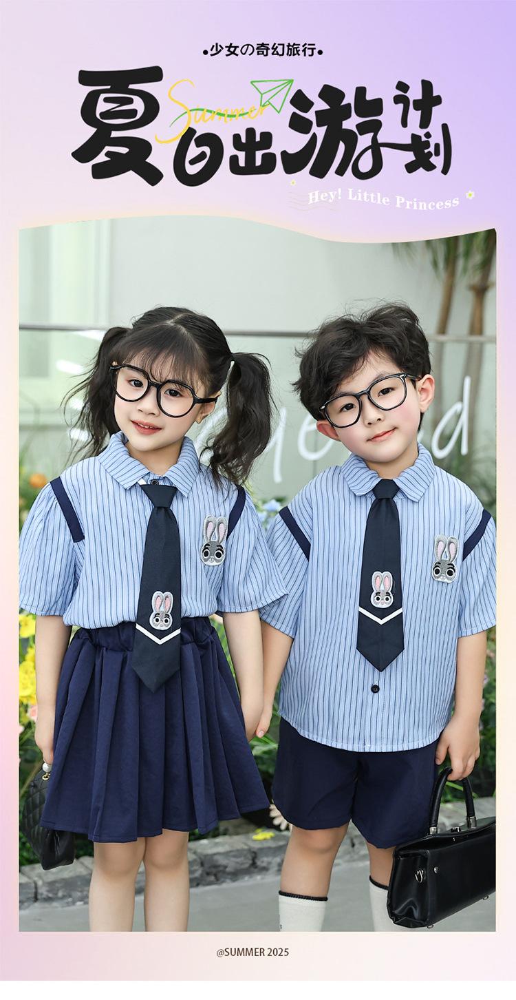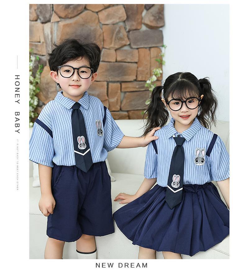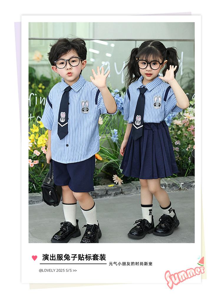 Traje de camisa para niño Verano Estilo universitario Ropa para presentación Ropa de clase de jardín de niños Uniforme escolar para niña Foto de graduación Ropa para niños